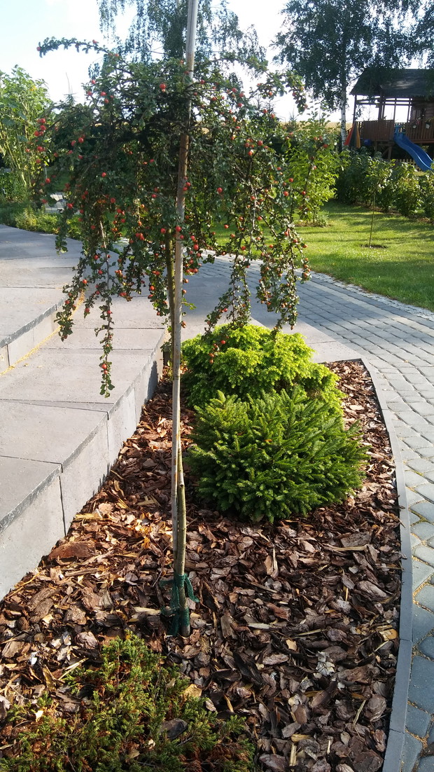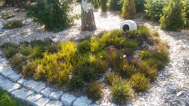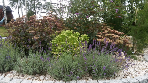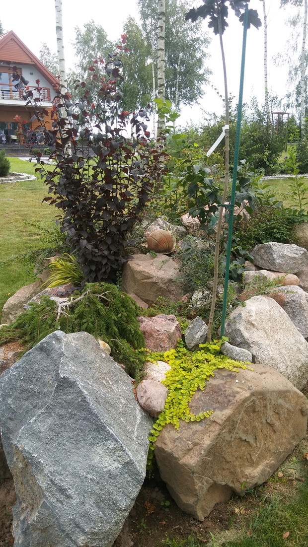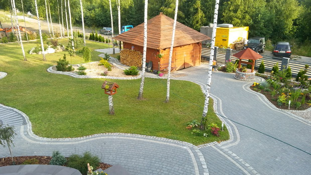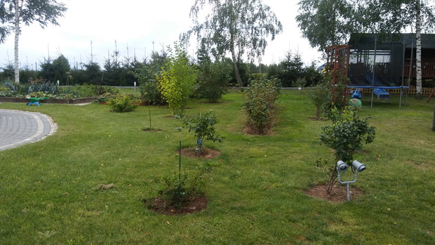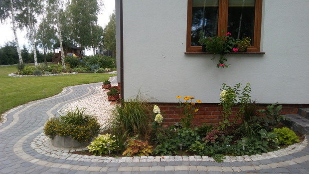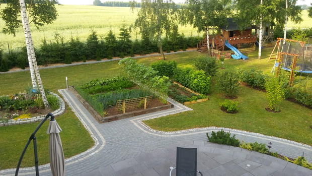 Ogród urządzony jest w stylu wiejskim. Tworzyłam go z pasją przez ostatnie trzy lata. Dom wraz z ogrodem został usytuowany w lesie brzozowym. Ogród jest bliski naturze, który charakteryzuje się swojskim, swobodnym klimatem. Łączy w sobie funkcje dekoracyjne i użytkowe. Obok roślin ozdobnych takich jak ostróżki, dalie czy chabry spotkamy w nim grządki warzywne i ziołowe oraz drzewka owocowe. Atutem mojego ogrodu jest to, że zachowuje swój urok niezależnie od wielkości terenu na jakim jest położony, tak więc nawet w niewielkim ogródku można stworzyć prawdziwy, wiejski klimat. Niewątpliwie tworzy przytulną i nieco bajkową atmosferę. W ogrodzie spotkamy drewniane płotki, kamienne rabatki podkreślając naturalny charakter. Rożnego rodzaju kamienie połączone z roślinami tworzą niezastąpiony swojski klimat. Kręte ścieżki zachęcają do spacerów i odkrywania poszczególnych części ogrodu. Wyszczególniona jest część z drzewkami owocowymi czy schodząc z tarasu wprost na krzewy owocowe. Wśród zieleni rośnie mnóstwo kolorowych, pachnących kwiatów. Kwiatowe rabaty umieszczone są na froncie domu lub w pobliżu miejsc odpoczynku. Można spotkać kwiatki o mocnych, nasyconych barwach, np. ostróżki, dalie, naparstnice, róże, słoneczniki, funkie, łubiny, astry, lwie paszcze, maciejkę. Na rabatach kwiatowych uwidocznione są również kwiaty cebulowe, kwitnące wiosną (tulipany i narcyzy) oraz latem (czosnki i lilie). Jesienią zaś zakwitają min rudbekie. Obok domu posiadam założone grządki warzywne