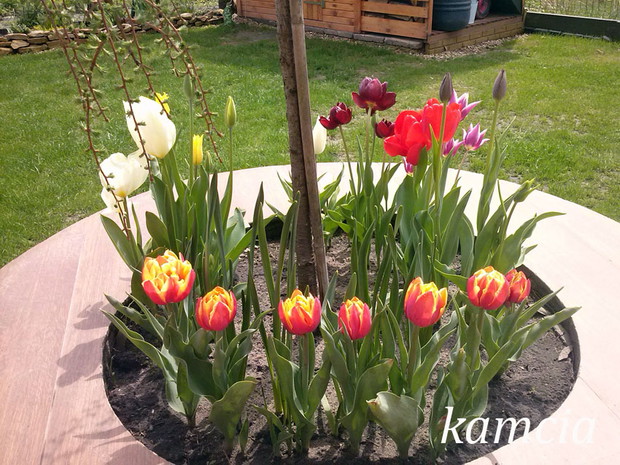 1,5 roku temu wspólnie z mężem i synkiem zaczęliśmy tworzyć kawałek naszego świata. Wychowani w bloku, nie mając pojęcia o ogrodnictwie, ale za to mając ogromny zapał i chęci do pracy rozpoczęliśmy naszą przygodę z ogródkiem. Wszystkie prace wykonywaliśmy sami, od równania terenu, nawożeniu ziemi, układaniu murka oporowego jak i sadzeniu roślin. Informację zdobywaliśmy z internetu, jak i czasopism. Pierwsze fotki przedstawiają początek naszej drogi, a następne jak to wygląda obecnie, Jeszcze wiele pracy przed nami, ale i tak jesteśmy dumni z tego co już osiągnęliśmy. Cały czas się uczymy i mamy nadzieje, że z każdym kolejnym rokiem będzie coraz ładniej.