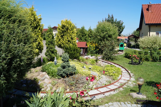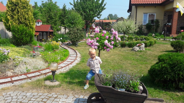 Nasz rodzinny ogród. Tutaj czujemy się cudownie. Wnuki rozpieszczamy i sobie dogadzamy :) Wnuki uwielbiaja helikopterem latać i jeździć kolejką, dźwigiem, które zaprojektował dziadek Wojtek, a starsza część rodziny uwielbia wypoczywać w herbaciarni i w ogródku o który dba babcia Lidia. Zgrany duet z nas dziadków. Babcia upiększa ogród a dziadek organizuje rozrywkę :)