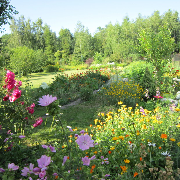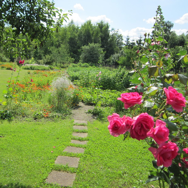 Działka, która ma powierzchnię prawie 2400 m2, jeszcze 30 lat temu była całkowicie przeznaczona na warzywa i owoce. Dzisiaj mamy mały warzywnik, kilkadziesiąt drzew owocowych i duuużo kwiatów oraz krzewów ozdobnych. Staramy się dobierać rośliny w taki sposób, aby ogród kwitł przez cały okres wegetacji. W związku z tym zmienia się on praktycznie z każdym dniem. Joanna Klockowska