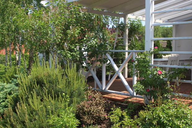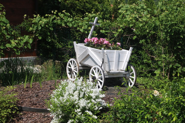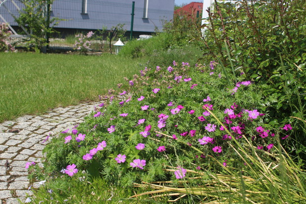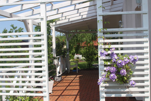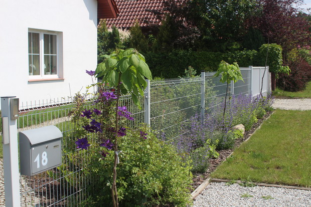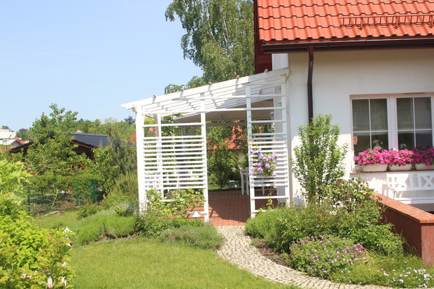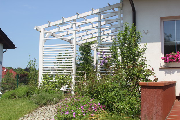 W Obornikach Śląskich mieszkamy 6 lat (od sierpnia 2011r.). Myślę, że już się tu całkiem dobrze zadomowiliśmy, zarówno w mieście, jak i w lokalnej społeczności. Chętnie uczestniczymy w wydarzeniach kulturalnych, nasze dzieci chodzą tutaj do szkół, mamy wspaniałych sąsiadów. Projekt ogrodu zrobiła nam firma OGRODY projektowanie, urządzanie, pielęgnacja pani Lidii Różańskiej, natomiast wybór roślin i nasadzenia zrobiliśmy sami. Chcieliśmy, aby kwiaty w ogrodzie były w kolorach fioletowym, białym i różowym. Marzył mi się ogród różano - lawendowy. Ogród jest pasją mojego męża. Wszystko w nim zrobił sam z pomocą synów. Od 3 lat cieszymy się też pergolą, również zbudowaną przez męża. Bardzo lubimy nasz dom i ogród. Codziennie jak wracamy z pracy z Wrocławia czujemy się tu trochę jak na wakacjach, szczególnie w okresie letnim, kiedy możemy w pełni korzystać z uroków ogrodu, a taras traktować jak dodatkowy letni pokój i przedłużenie jadalni. Chcemy, aby nasz ogród z roku na rok był coraz piękniejszy. Zapraszamy do nas! Może i Wy polubicie nasz ogród! Z poważaniem Monika Kurnicka