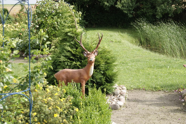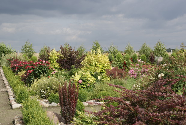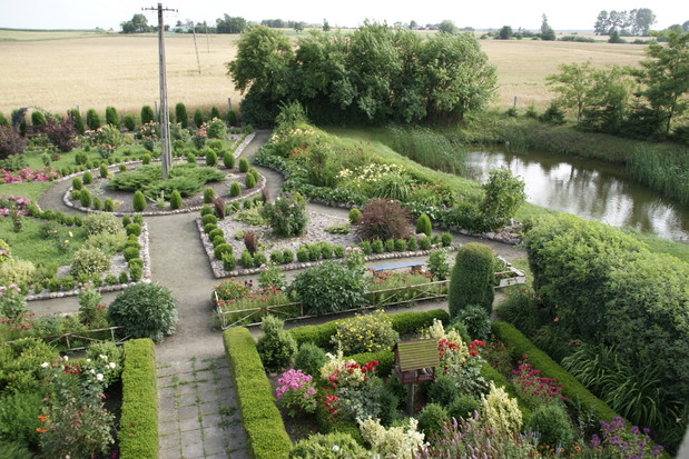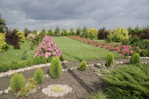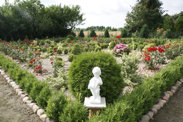 Ogród ten jest własnego pomysłu, samodzielnie wykonana.Spędzamy tam wiele czasu pracując i odpoczywając.Znajduje się tam wiele ciekawych punktów, które cieszą oczy swoim wspaniałym widokiem. Wego granice wyznaczają zimnozielone tuje oraz świerki i sosny. w głębi ogrodu znajduje się staw obrośnięty tatarakiem i sitowiem. Pływają w nim kolorowe rybki i żaby. Ogród można zwiedzac chodząc po żwirowych ścieżkach, wśród pięknie kwitnących wiciokrzewów stoją ławeczki na których można odpocząc po ciężkiej pracy w ogrodzie. Ścieżki wyznaczone są bukszpanem, a dookoła rozpościera się zielona muraw, którą zdobią gęste krzaki kolczastych róż w różnych kolorach, dalie i hortensje oraz perukowce i pęcheżnice w różnych odcieniach. Trudno oprzec się urokowi kwitnących pachnących azalii i różaneczników.Rabaty ozdobne mają ściółkę z polnych małych kamyszków. Ogród ten ozdabiają różne figurji z gipsu, drewna i żywicy. Swoje miejsce ma też sad w którym rosną różne drzewa owocowe:jabłonie (dające pyszne słodkie jabłka), wiśnie, czereśnie i śliwy. Są również słodkie maliny,z których na zimę robimy słodki syrop na przeziębienie. jest również warzywniak a w nim: marchew, pietruszka, seler, por no i oczywiście ogórki z których robimy różne przetwory. Zapachy mieszają sie tutaj i przenikają nawzajem, tworząc mieszankę, której nie oprze się żaden człowiek. Przebywanie w tym miejscu jest miłym sposobem na spędzenie wolnego czsu. Każdy gośc który nas odwiedza nie może nacieszyc się bogactwem tego ogrod