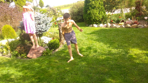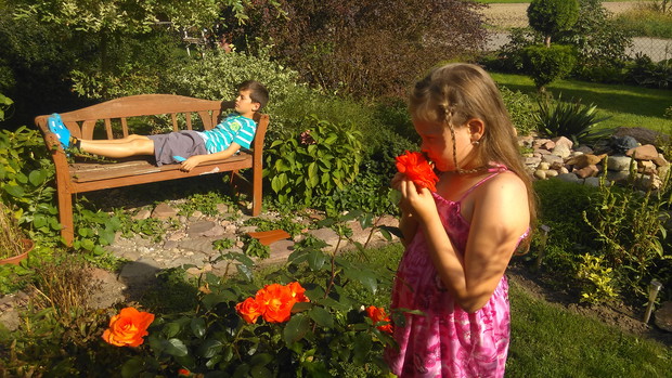 Uwielbiam zajmować się ogrodem,ale nie ma on być pomnikiem czy wystawą,on ma żyć. Mój ogród żyje dzięki temu że dzieci wchodzą wszędzie gdzie tylko mogą. Zresztą tam gdzie nie mogą też ;-) żyje dzięki temu że grill nie stygnie w czasie lata (z czego bardzo cieszy się pies) ,że każdy ma tam swoje miejsce, zależnie od potrzeby na odpoczynek, na zbawę na chwilę refleksji ,Albo po to żeby zachwycać się pięknem natury. Jednym słowem ogród jest dla rodziny i to jest jego najważniejsze funkcja.
