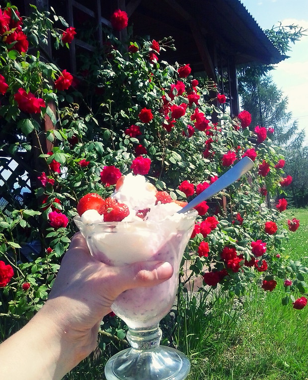 Kocham nasz ogród i nie zamieniłabym go na żadne skarby. Co roku możemy cieszyć mnóstwem warzyw i owoców zerwanych prosto z naszej działki. W naszym ogrodzie znajdziemy: pomidory, dynie, ogórki, ziemniaki, pietruszkę, buraki, marchewkę ,seler, cukinię ,koperek , słonecznik a także soczyste jabłuszka, czereśnie,wiśnie, maliny, truskawki, brzoskwinie, maliny i poziomki, borówki . Dzięki temu cieszymy się tymi zbiorami przez cały rok. Robimy różnorodne przetwory ,których nie musimy kupować w sklepie , do tego są bardzo zdrowe i nie mają w sobie żadnej chemii. O nasz ogródek dba moja kochana mama , ,która wszystko sadzi i pielęgnuje , ale wiem ,że zaraziła mnie swoją pasją do ogrodów i podczas jej nieobecności wszystko przejmuję Ja - czyli jej 23 letnia córka :) . Zawsze kiedy wracam z miasta wyciągam leżak ,książkę i rozkoszuję się widokiem i zapachem róż , które uwielbiamy, Choć pielęgnacja takiego ogrodu wymaga dużej pracy to jest tego warta.