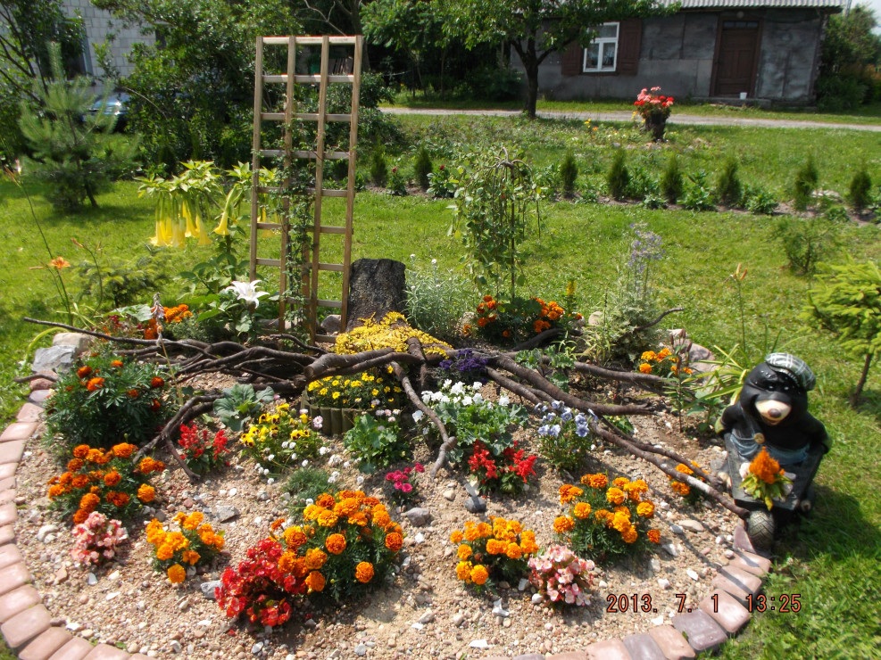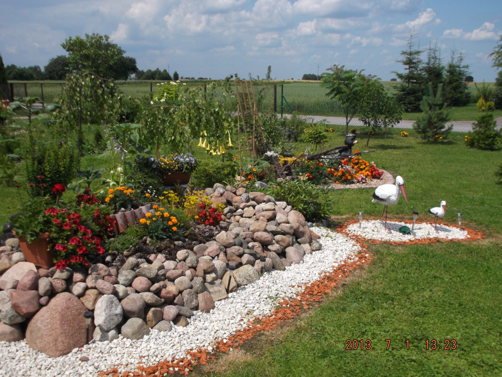 A tak wygląda mój ogród latem. Sadzenie kwiatów to moja pasja. Każda wolną chwilę spędzam w moim ogrodzie . To taka oaza spokoju. Przebywając w nim sprawia mi to przyjemność. Co jakiś czas jeżdzę do centrów ogrodniczych, i wynajduję nowe kwiaty czy różne ozdoby. W ten sposób mój ogród z miesiąca na miesiąc, staje się coraz piękniejszy.