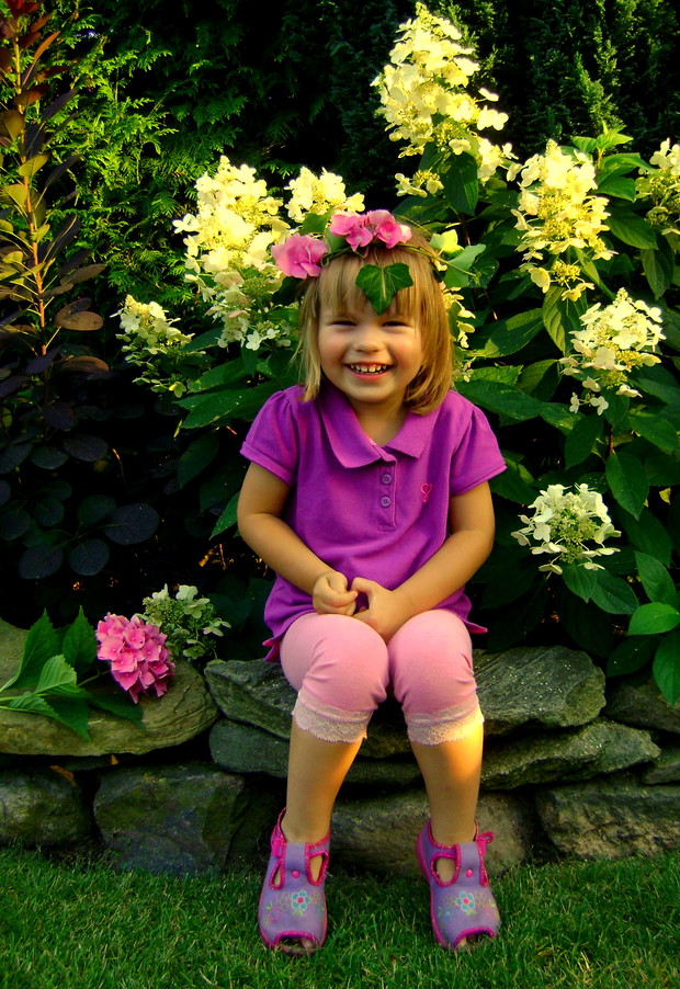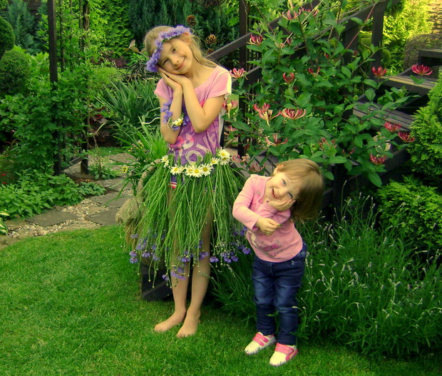Mój mały przydomowy ogród tak stworzyłam, by przyciągał swym urokiem całą naszą rodzinę, która jest dość liczna. Mam fantastycznego męża, trzech synów, córkę, 2 synowe oraz 3 cudowne wnuczki, Madzię, Kasię i Nadię. Zawsze jak do babci przyjdą to się dobrze bawią to w chowanego, berka, ciuciubabkę czy też przebieranie w różne bajkowe postacie. Madzia jest zawsze pierwsza do przebieranek. To ona inspiruje wszystkich do wspólnej zabawy. Wtedy to zaczyna się zabawa na całego. Najpierw wspólna wyprawa na łąkę, zrywanie kwiatów następnie wymyślanie i wspólne robienie ciekawych ubiorów z tego co daje nam matka natura. Ile przy tym radości i frajdy dla takich maluszków tego się nie da opisać ! To tutaj również wszyscy świętujemy, imieniny, urodziny oraz wszystkie ważne dla nas uroczystości. To dom i ogród i jego panująca atmosfera przyciąga i zespala na dobre rodzinę, która z przyjemnością do niego powraca, bo wszyscy czują się w nim cudownie. To nasze magiczne miejsce.