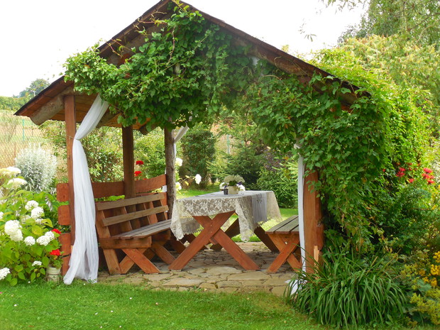 Ogród powstał na terenie Popradzkiego Parku Krajobrazowego na prawie 30 arach.Wszystkie prace ogrodowe wykonuję sama a elementy malej architektury wykonał mąż i syn.To jest nasze miejsce na spotkania rodzinne i nie tylko,mieszkają tu dwa psy,6 kotów,kury i pawie.Ogród jest moja pasją którą postanowiłam pokazać innym,dlatego w każdą sobotę i niedzielę jest czynny dla zwiedzających.Ogród daje nam mnóstwo radości i możliwość obserwacji ciągłych zmian.