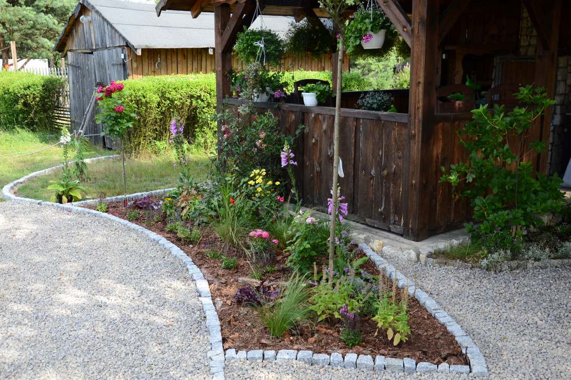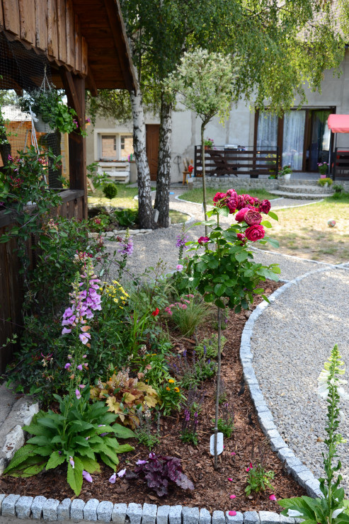 Mój ogród zaczął powstawać stosunkowo wcześnie, nie był jednak ani ładny, ani funkcjonalny. Z biegiem czasu zaczęliśmy wraz z mężem wprowadzać zmiany, mam nadzieje, że na lepsze. Jestem miłośniczką roślin , głównie tych ogrodowych i balkonowych. Większość z nich wyhodowałam sama lub z pomocą mojej mamy. Część okazów przywoziłam z licznie odwiedzanych targów roślinnych. Odkąd na świecie przywitałam moją córkę zaczęłam dbać także o świeże warzywa i owoce, głównie borówki, truskawki i jabłka, a z warzyw chętnie jedzone przez córkę pomidory czy ogórki. W ogrodzie mam dużo roślin ozdobnych, około 5 odmian hortensji bukietowych, 3 odmiany krzewuszek, trawy ozdobne ( miskanty, rozplenice, ostnice, turzyce, kostrzewy ), liczne szałwie omszone, róże oraz lawendy. Lawendy z racji piaszczystego podłoża rosną u nas bardzo dobrze czego nie można powiedzieć o trawniku , przed nami jeszcze sporo pracy by uzyskać ładną i zwartą zieloną murawę. Jesienią zbieram nasiona naparstnic, które sama hoduje. W lutym w tunelu foliowym staram się już produkować rozsady roślin jednorocznych, surfini, złocieni, pelargonii oraz pomidorów czy ziół. Ogród to miejsce w którym co chwila jest coś do zrobienia, nie jest monotonny, bo co chwila coś zakwita nowego, kiedy coś już przekwita, zmienia się wraz z zachodzącym słońcem, wraz z porą roku, a do tego jest przyjazny dla pszczół, tutaj swój pokarm znajdują pszczoły z pobliskiej pasieki.