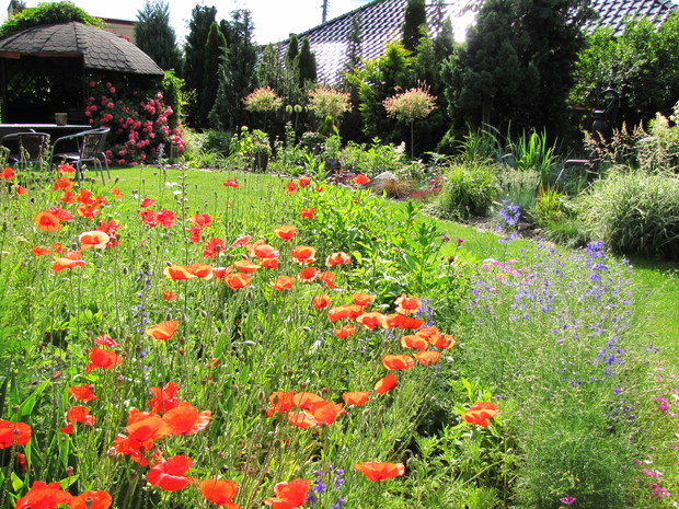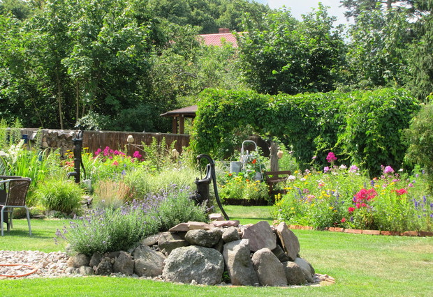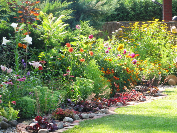 Być pasjonatem ogrodu przez 12 miesięcy to coś więcej. Mój ogród od kilkunastu lat tworzę tak, aby każdy miesiąc w różnych zakątkach, dawał mi inną satysfakcję. Kiedyś lubiłam tylko lato z czasem wiosnę , dziś każda pora roku, każdy miesiąc jest tak samo lubiany, bo jest inny. Lubię zimę w ogrodzie za sprawą zimozielonych krzewów i iglaków. To właśnie teraz zauważam ich odcienie zieleni i raduję się nią, gdy wokół jest szaro. Zima to także czas gdy przyglądam się i poznaję ptaki. Kilka karmników w pobliżu okien to doskonały „zimowy, żywy obraz”, który można podziwiać godzinami. Dla mnie to także odpowiedni moment, aby bez pośpiechu zaplanować kolejny ogrodowy sezon. Wiosna to czas pracy fizycznej w ogrodzie, to czas gdy wszystkie „papierowe plany” zaczynają się urealniać. Szybsze tempo, pierwsze kwiaty, śpiew ptaków i za to lubię wiosnę. Lato najmniej wymagające, odwdzięcza się sytością barw kwiatów jednorocznych i bylin min. maków, ostróżek, lilii, godecji, zapachem floksów, ziół, słońcem słoneczników, ulotnością motyli i błogim lenistwem. Kolory zmieniają się na rabatach jak w kalejdoskopie. Teraz przyglądam się i poznaję motyle i owady w moim ogrodzie. Sezon kolorowo - kwiatowy staram się wydłużać możliwie jak najdłużej, dlatego jesień w moim ogrodzie tonie w kolorach do listopada. Z myślą o barwnej jesieni postawiłam na dalie, hortensje bukietowe, aksamitki, dzielżany, rudbekie, trawy, marcinki, astry, cynie , chryzantemy i winobluszcz. Z myślą o drobnych zwierzątkach tj. wiewiórki, jeże pomagam im przygotować się do zimy. Dla mnie ogród ma wielorakie znaczenie. Ogród to nie tylko rośliny, ale to też ptaki, motyle, dzikie zwierzątka, owady, dekoracje ogrodowe czy mała architektura. Dlatego ciągle coś zmieniam, dostawiam, buduję, tworzę. U mnie sezon trwa 365 dni w roku!