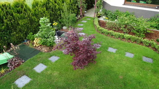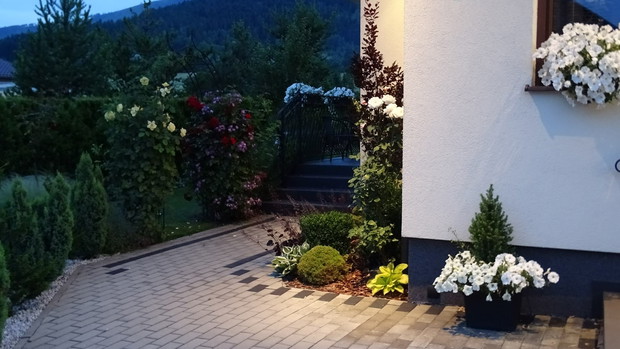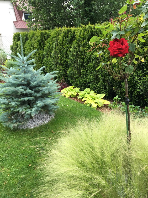 Witajcie. Mam na imię Łukasz i już od 5 lat bawię się w " ogrodnika". Od momentu posiadania własnego kawałka działki 600m2 i wybudowania domu obudziło się we mnie nowe hobby tj. prace projektowe i wykonanie krok po kroku własnego ogrodu. Wszystkie prace wykonuje samodzielnie. Ogród jest mały bo ma tylko ok 500m2 ale dzięki temu jestem w stanie zadbać o każdy szczegół i pielęgnację, jestem zawodowo bardzo zapracowany pewnie jak wszyscy i to odskocznia też od stresów dnia codziennego, która pozwala się wyciszyć a przy okazji zyskuje też moja rodzinka żona i syn bo mogą z przyjemnością korzystać z uroków naszego bajkowego zakątka. Jeśli chodzi o rośliny to podoba mi się wiele gatunków i wprowadzam je do ogrodu, wiem że profesionale ogrody powinny być jednokolorowe i ułożone , ale mi to średnio wychodzi. Ogród jest poprostu taki mój :-) Zapraszam do zwiedzania.