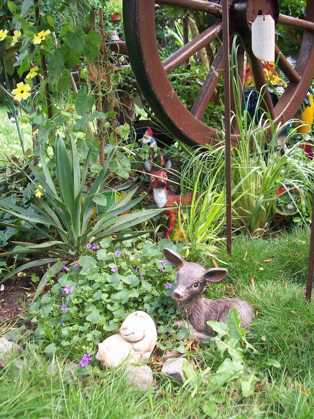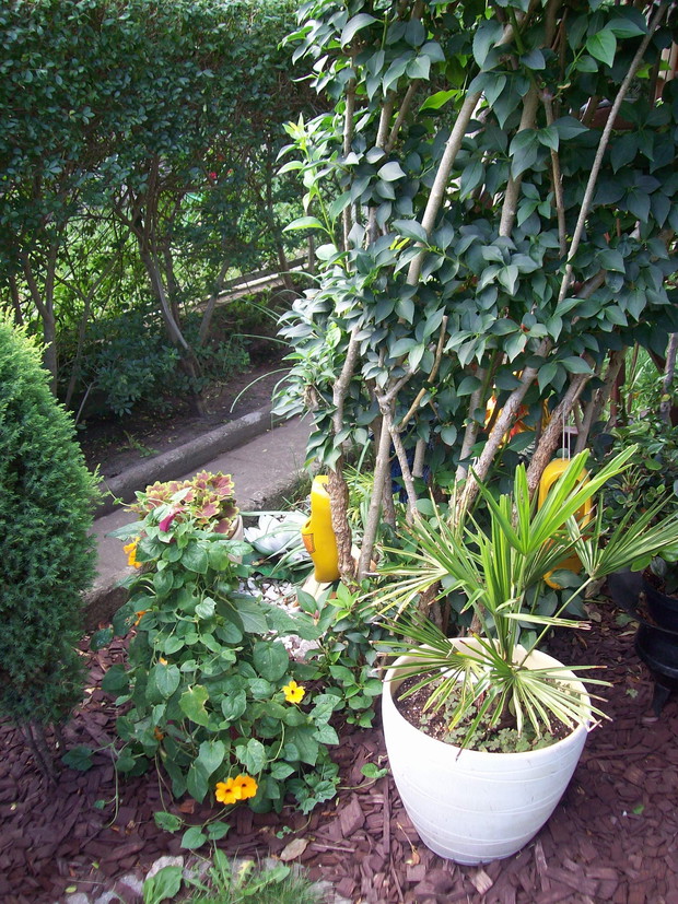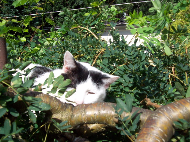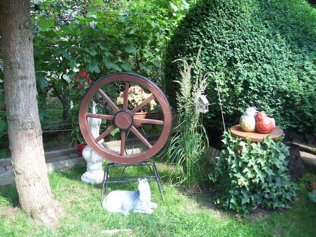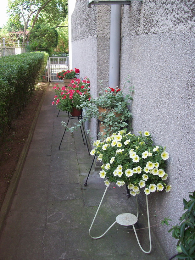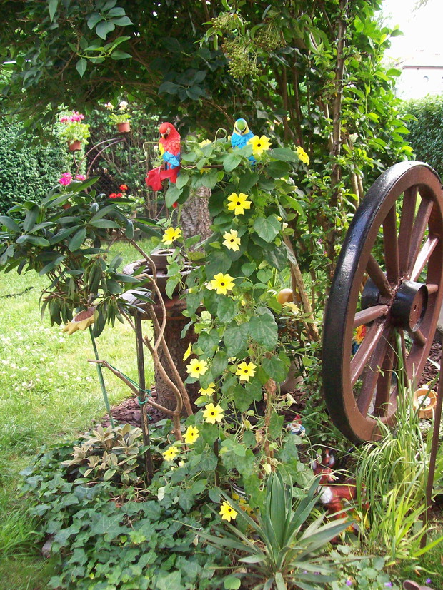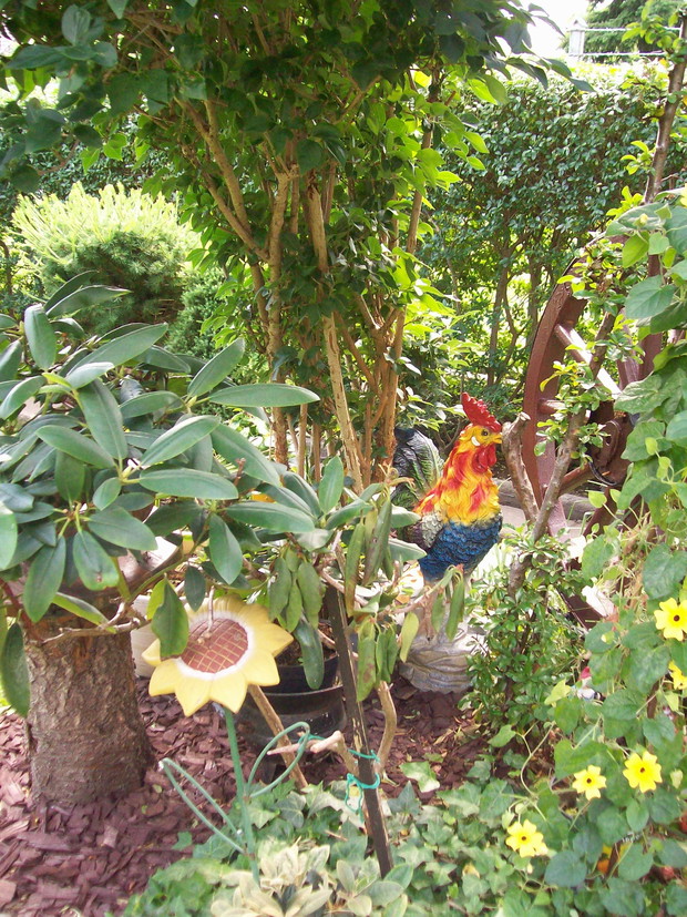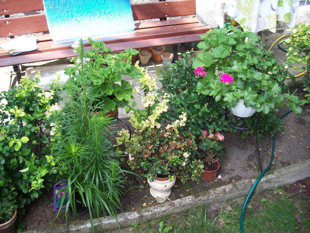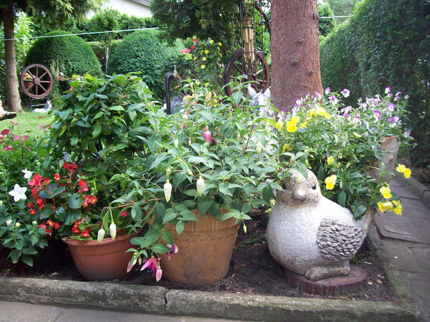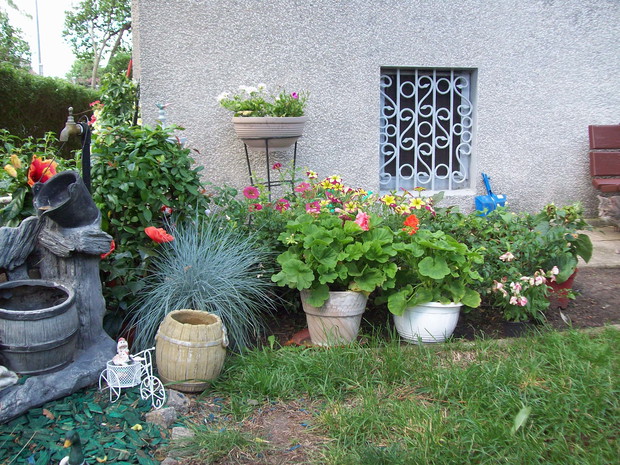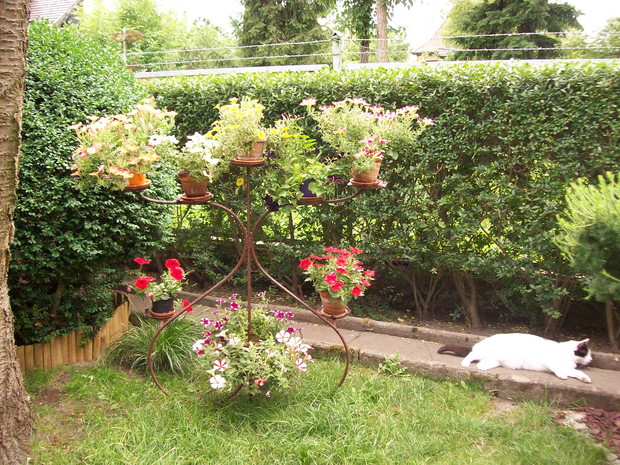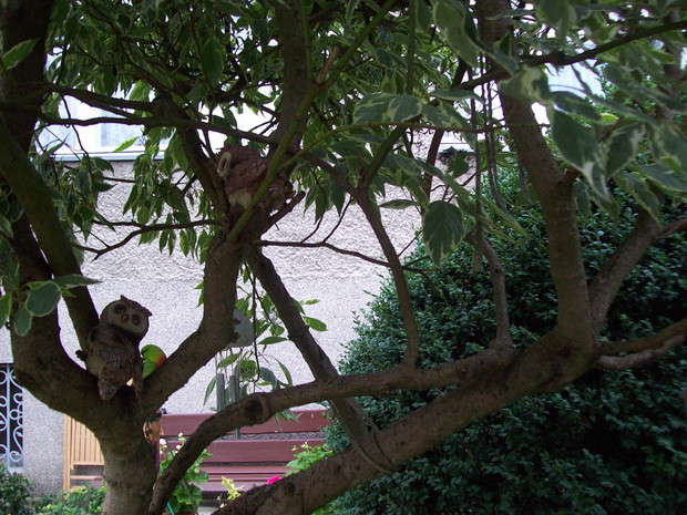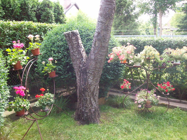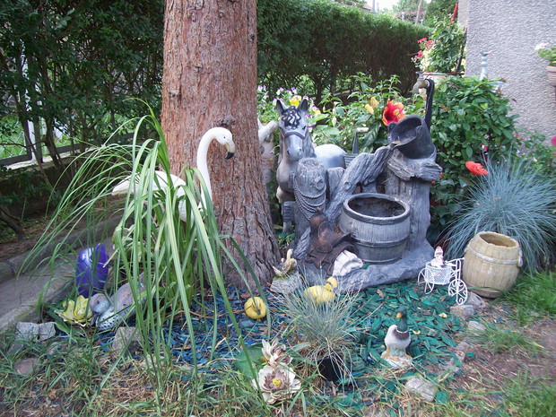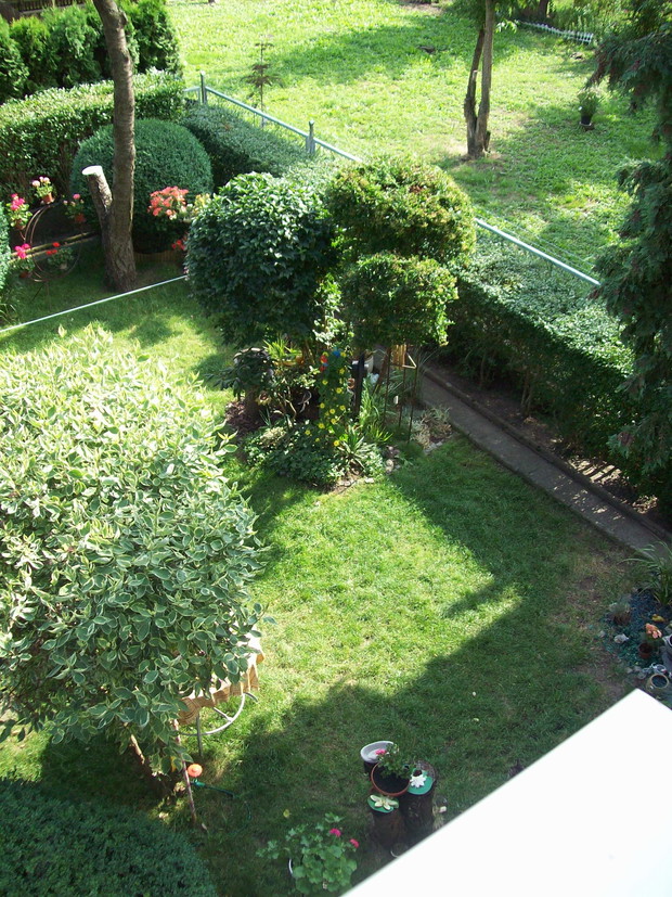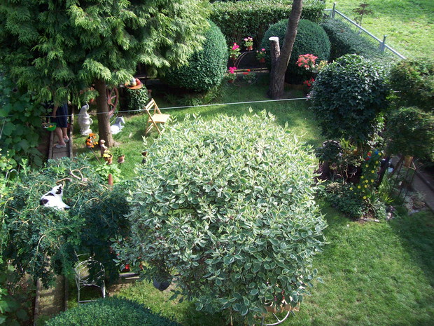 Nasz ogród to nasza Melisa i Kofeina. Przeplatają się w zaleznosci od dnia i pory roku. Wszystko jest ważne szum liści, traw, szum wody z małej fontanny. faktura kwiatów- nawet wpływa na chęc by je dotknąc i sprawdzic czy aby napewno sa prawdziwe. W ogrodzie pełnym tajemnic- z zakamarków zagladaja postacie krasnali dzikich i egzotycznych zwierzat- hmm czy to jest bajka ?a moze jakas tajemnica?To wszystko otula spiew ptaków, i odgłosy wielu innych zwierzaków bywajacych w naszym ogrodzie. Z roślin uwagę przykuwają przede wszystkim wielkie kule bukszpanu. Są tłem dla feerii kwiatowych barw i rzadko spotykanych okazów, jak choćby Aristolochia grandiflora. Na wejściu ozdobne trawy, hosty i równie efektowne canny oraz róże. Za nimi barwny korytarz okazałych sezonowych kwiatów rozmieszczonych na stojakach i w donicach: pelargonii, petunii, surfinii, funkii. Dopiero za nimi przy przystrzyżonym żywopłocie otwiera się ogrodowa przestrzeń, której granice wyznaczają formowane zimozielone okazy: od kul bukszpanów po stożki tui. Po drugiej stronie siatki -winogrona które pną się na podporach na których również znajdują się budki z jadłem dla ptactwa. Pomimo tego, że ogród pełen okazałych drzew i krzewów ozdobnych oraz wielobarwnych kwiatów jest królestwem... przede wszystkim kotów. Jest ich dziesięć - domowych. Pozostałe - nawet większą gromadą - przychodzą tu w gościnę. Czy to odpocząć w przyjaznym im miejscu od zgiełku i wszelakich zagrożeń, czy to przetrwać zimę w stawianych wielkich ocieplanych budach. Właściwie to za ich sprawą nasz ogród zgłosiłyśmy do konkursu.Żeby pokazać innym, że można mieć wokół domu piękną zieleń, a na niej mnóstwo zwierząt, w tym koty i psy, bo - nie zapominajmy - pod naszym dachem we wzajemnym szacunku i symbiozie żyją również dwa pudelki. Zgłosiłyśmy ogród, aby obalić mit, że kot i roślina to sytuacja nie do pogodzenia.Nasz ogród to miejsce, w którym „dachowce" polują na muchy, psy o uwagę ludzi, a tunbergie, irgi, różaneczniki i choćby agawy - na promienie słońca.
