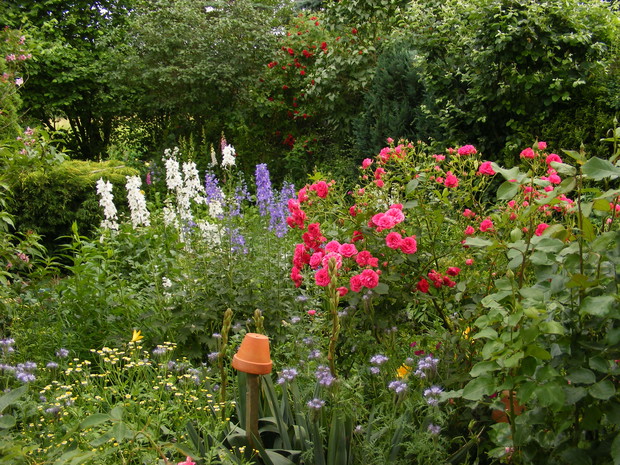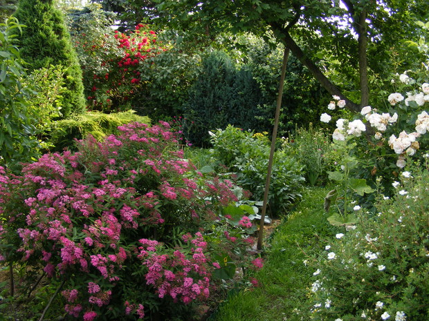 Nasz ogród znajduję się w malowniczo położonej Kotlinie Kłodzkiej,składa się z starszej części założonej kilkadziesiąt lat temu jeszcze przez moją teściową oraz nowszej stworzonej przeze mnię. Starszy ogród toworzą rabaty kwiatowe i ziołowe wraz z grządkami warzywnymi,w nowszej części powstały narazie tylko rabaty bylinowe wraz otaczającym je przydomowym sadem. Co roku nasz ogród odwiedza mnóstwo różnych stowrzeń od kolorowych motyli,pszczół,jeży a kończąc na szarych ropuchach.Taka ilość gości zobowiązuje nas do stosowania tylko naturalnych nawozów i oprysków. Wiosną rabaty zapełniają się krokusami,narcyzami,tulipanami i towarzyszącymi im ciemiernikami. Wczesne lato to czas najintesywniejszego rozkwitu większości roślin,ogród zdobią m.in.róże,ostróżki,piwonie oraz inne byliny i krzewy. Po tym okresie na rabatach ukazują się floksy,rudbekie,budleje,hortensje i rośliny jednoroczne które zdobią ogród aż do przymrozków.Jesień to czas zbioru plonów z ekologicznego warzywniaka i sadu. Swój ogród staram się prowadzić w naturalistycznej formie by wraz z otaczającą go przyrodą tworzył spójną całość,pomysły na różne zmiany czerpie z czasopism ogrodniczych m.in "Mojego Pięknego Ogrodu" Ogród wynagradza mi wysiłek włożony w jego uprawę oraz pięlegnacje,mam nadzieje że z roku na rok będzie stawał się jeszcze piękniejszy. Pozdrawiam