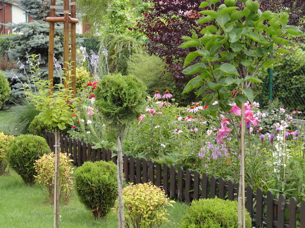 Często mam wrażenie, że nad moim ogródkiem czuwa dobry anioł... Anioł-ogrodnik, który kocha kwiaty, krzewy i wszystko co rośnie i żyje w ogrodach. Bo jak inaczej wytłumaczyć piękno jakie dają nam nasze rośliny i całe ogrodowe otoczenie? Za każdym razem kiedy odwiedzam moje ukochane miejsce - odkrywam coś nowego... Od jakiegoś czasu zadomowiły się tu "działkowe" kotki. Najedzone wylegują się w cieniu iglaków i tawuły... To najmilsze chwile, kiedy możemy posiedzieć w cieniu jabłoni, patrzeć na całą paletę barw, słuchać śpiewu ptaków, mruczenia kotów, smakować poziomki, gruszki, a wkrótce pyszne orzechy... Wy też tak macie?