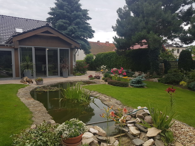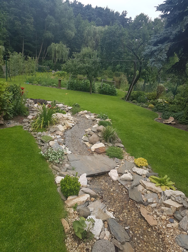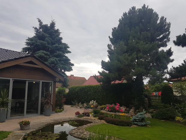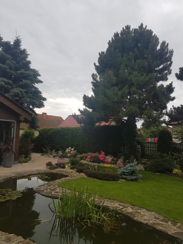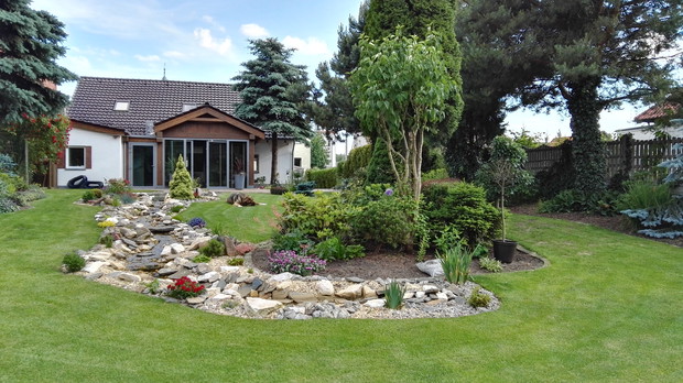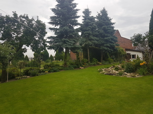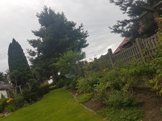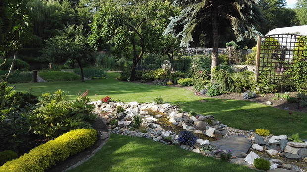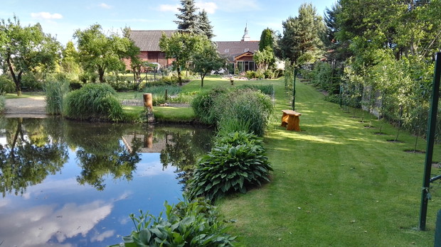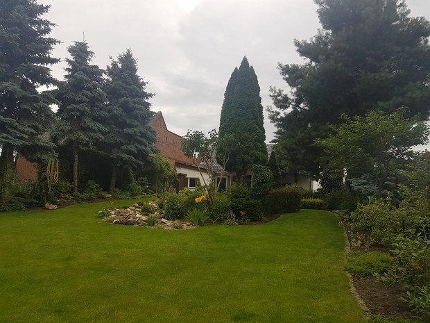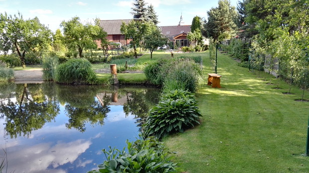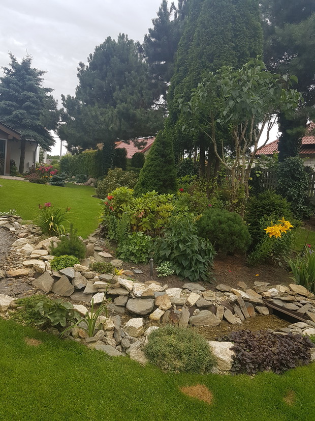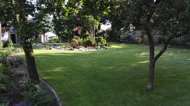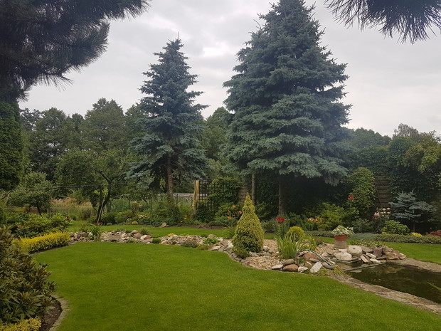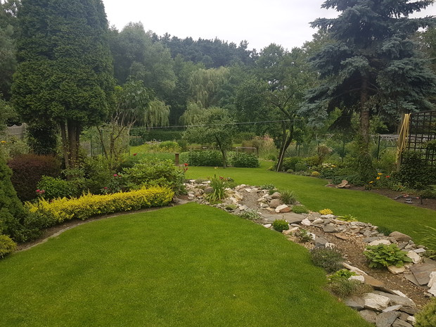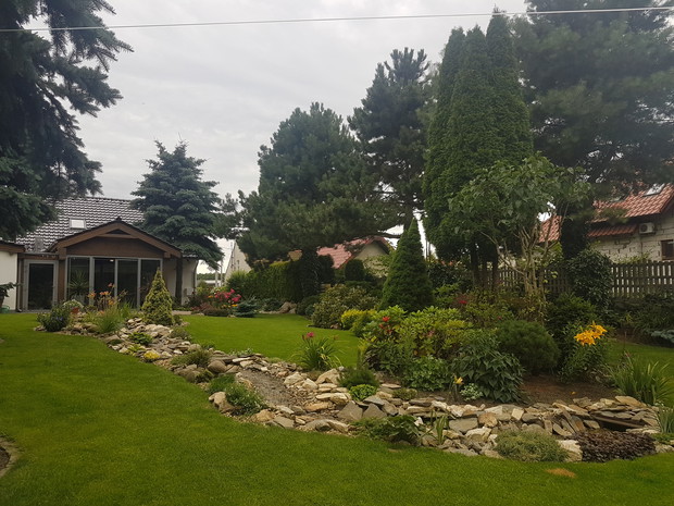 Nasz ogród rodzinny to miejsce niezwykłe. To miejsce, w które zaangażowali się domownicy (nie jest to projekt ogrodnika architekta). Ogród znajduje się za domem. Wybudowany został w nim taras/altana gdzie spotykamy się przy rodzinnych biesiadach, gdzie każdy znajdzie chwilę spokoju dla siebie czytając książkę, oglądając TV. Pierwsza część ogrodu to ozdobne krzewy i drzewa niektóre sięgające 7 metrów. Rośnie w nim wiele odmian iglaków, bukszpanu,liliowce, rododendrony, azalie i kwiaty jednoroczne. Wiosną ogród jest kolorowy od kwiatów. Piękny krzew róży, zajmujący sporą część prawej strony ogrodu. W pierwszej części ogrodu znajduje się także oczko wodne, rybki, lilie wodne i mały sztuczny strumyczek zapewniający filtrację wody. Dalsza część ogrodu to ogród owocowy rośnie tam agrest porzeczki i maliny, borówki, truskawki, poziomki, jabłonie, śliwy, z których robi się pyszne przetwory. Mamy też niewielką, odgrodzoną część, w której rosną warzywa takie jak pietruszka, seler, cebula, koper, marchew, fasolka, ogórki, papryka, pomidorki koktajlowe oraz zioła. W ogródku znaleźć można miętę, ale i chrzan czy inne, nie zawsze znane zioła, która świetnie sprawdzają się w roli przyprawy. Koniec ogrodu kończy się strumyczkiem i lasem, który pozwala na izolację od zgiełku.