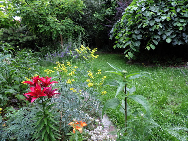 Mój ogród jest jak żywy organizm, ciągle się zmienia. Nie mogąc doczekać się wiosny planuję zmiany - dodaję i poszerzam rabaty, wycinam, przesadzam, starając się oczywiście w tym szale nie krzywdzić roślin. Wizualnie najbardziej odpowiadają mi naturalne, romantyczne ogrody, w których rośliny różnej wielkości, różnego pokroju, ale także o różnym kształcie, ubarwieniu oraz strukturze liści przenikają się nawzajem, mieszają się ze sobą. Rosnąc dosyć ciasno, tworzą naturalny gąszcz. I wydawałoby się, że to takie proste, że trzeba tylko pozwolić roślinom rosnąć, ale wcale tak nie jest, trzeba się sporo napracować żeby taki naturalny efekt uzyskać. Mój ogród jest dla mnie i dla mojej rodziny prawdziwym wytchnieniem, po powrocie z pracy, z miasta całe zmęczenie i stres gdzieś znikają, ogród działa na nas terapeutycznie.