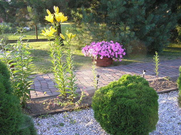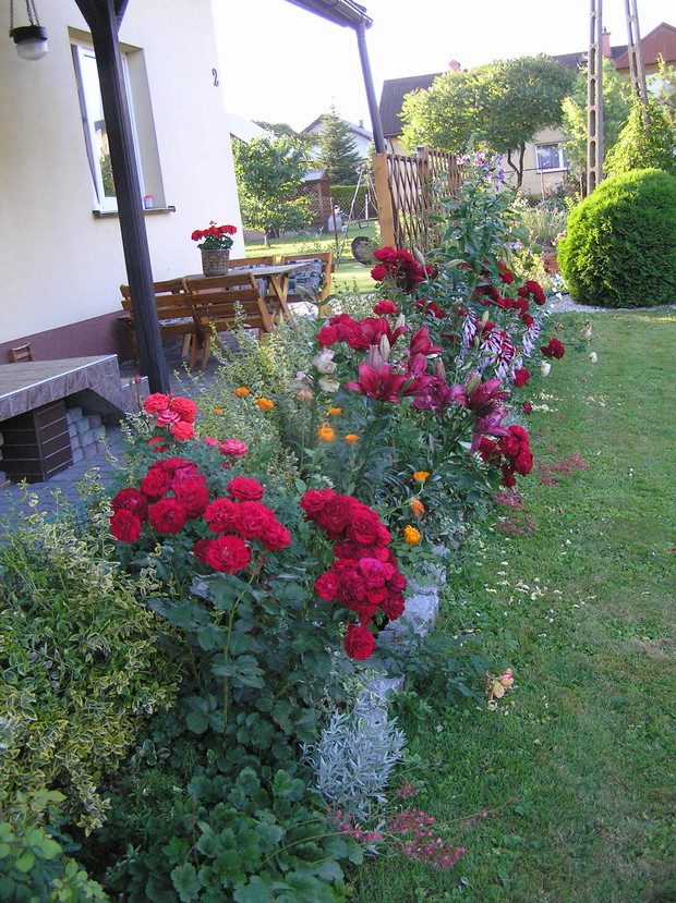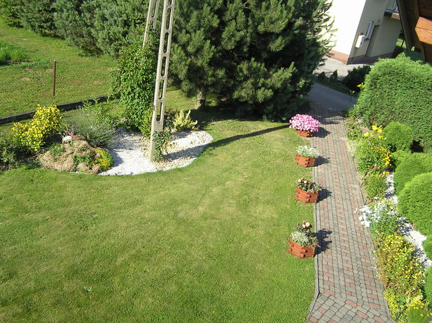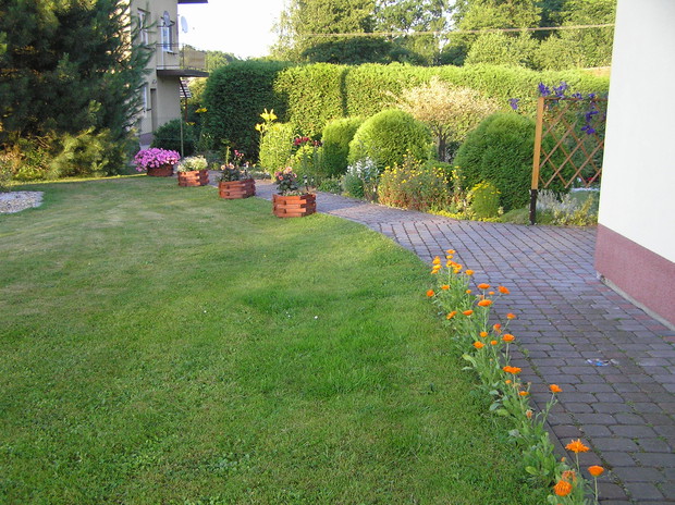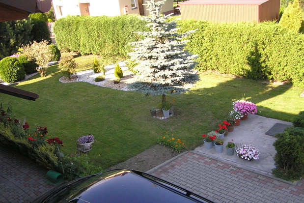 Nastały wakacje, a więc czas mojego urlopu. Mogę w końcu więcej czasu poświęcić pracy w ogrodzie. Powstał on 16 lat temu, kiedy tylko został uprzątnięty teren po budowie domu. Ciągle się zmienia, nie tylko za sprawą pór roku, kiedy to można zaobserwować wszystkie kolory jakie przyroda nam daje, ale i za sprawą zmian jakie wprowadzam: a to zakup krzewu jakiego jeszcze nie było w moim ogrodzie, a to modernizacja rabatek (kamyki, kora ozdobna, kostka na obrzeżach). Nasz ogród to właściwie małe ogródki z każdej strony domu. Przy podjeździe króluje lawenda. Dróżkami prowadzą nas kwiaty bogini Hery – lilie. Mimo dużej różnorodności gatunków roślin moim ogrodzie uważam, że dobrze się ze sobą komponują. Jedne rośliny przekwitają, za to w ich miejsce ciągle pojawiają się nowe. Dzięki temu mogę się cieszyć razem z rodziną przydomowym ogródkiem do późnej jesieni.