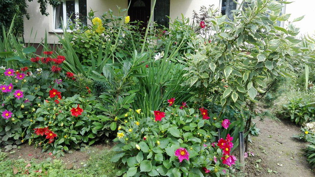 W moim ogrodzie bardzo dużo się dzieje, co roku przybywa w nim wiele ciekawych roślin. Jest on stosunkowo młody :), ponieważ zagospodarowaniem tej przestrzeni zajmuje się dopiero od 3 lat jednak od samego początku. W tym roku wsadziłem dużo mieczyków i czekam na rezultaty ponieważ u mnie jeszcze nie kwitną. Do nowych okazów należy również Wierzba Mandżurska, Thuje, Lawenda, Rozchodnik, Pęcherznica Bordowa, Róże, oraz Chryzantemy, dla których znalazło się miejsce w ogrodzie na ich rozsadzenie. A po za tym w ogrodzie są również: lilie, trawy ozdobne, dalie, maciejka, cynie, wiesiołki, trzmielina, irysy, klony, czarnuszka, hibiskus, pęcherznica żółta, dereń, paproć, nasturcja, sosny i wiele wiele innych. Cięsze cie z każdej wyhodowanej rośliny. Koło domu założyłem nowa rabatę z ozdobnymi iglakami którą obramowałem glinianą dachówką oraz wysypałem korą. Wszystkie rośliny są nawożone naturalnym obornikiem. Zapraszam do oglądania
