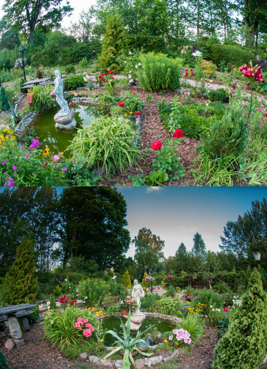 Ogród tworzony od ośmiu lat na dawnej części gospodarczej podwórka. W ogrodzie dominuje różnorodna roślinność połączona z kamieniem i wodą. Głównie występujące rośliny to róże angielskie, parkowe i pnące, hortensje bukietowe i ogrodowe, wielobarwne dalie, błękitne ostróżki, floksy, orliki, rododendrony, irysy oraz krzewy liściaste i zimozielone. Jest to prawdziwa oaza dla owadów, głownie pszczół z pobliskich pasiek . Miejsce wypoczynku całej rodziny i odwiedzających gości. Ogród aktualnie jest w trakcie modernizacji, wiec może zdjęcia nie oddają całego uroku. Pielęgnacja ogrodu wymaga wiele pracy, ponieważ położony jest na glebie 6ej klasy, a ostatnie upały dały się we znaki rośliną. Ale chyba rośliny doceniają wkład włożony w ich pielęgnacje i odwdzięczają się swoim pięknem. Jest to moja pasja od wielu lat.