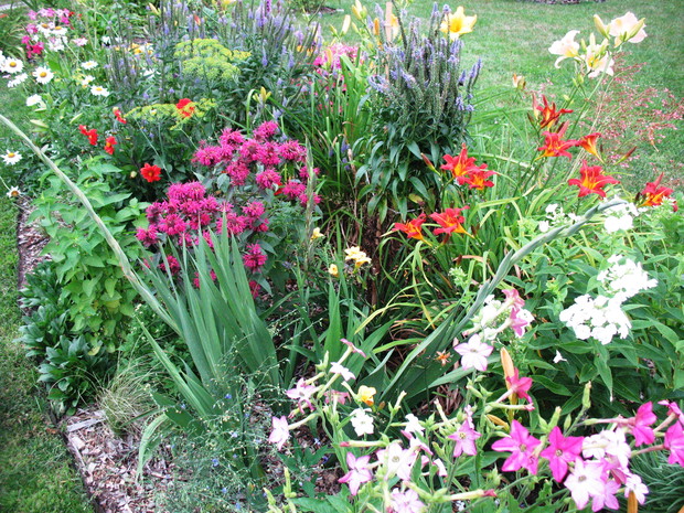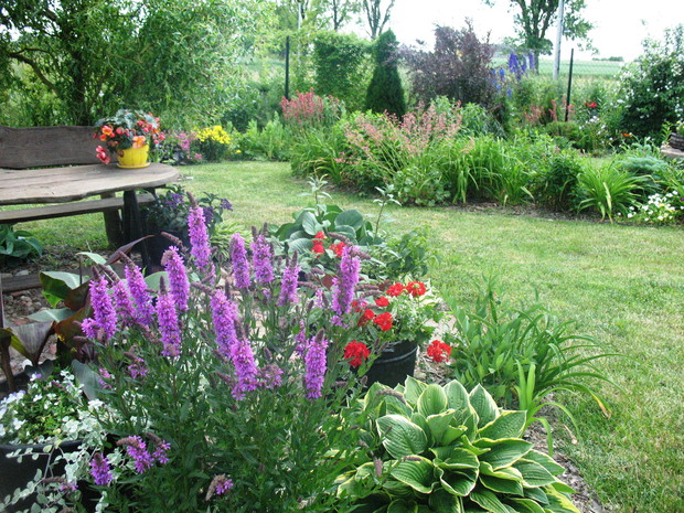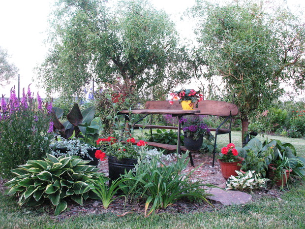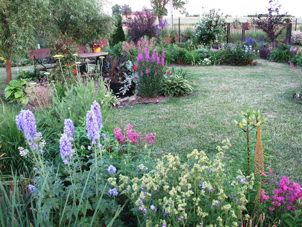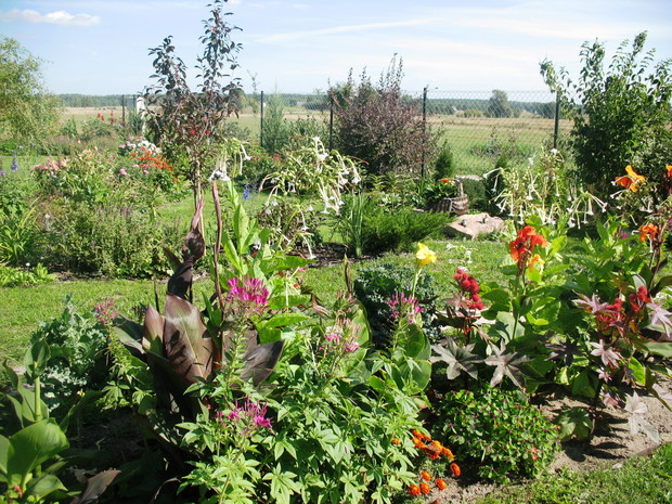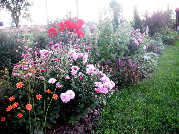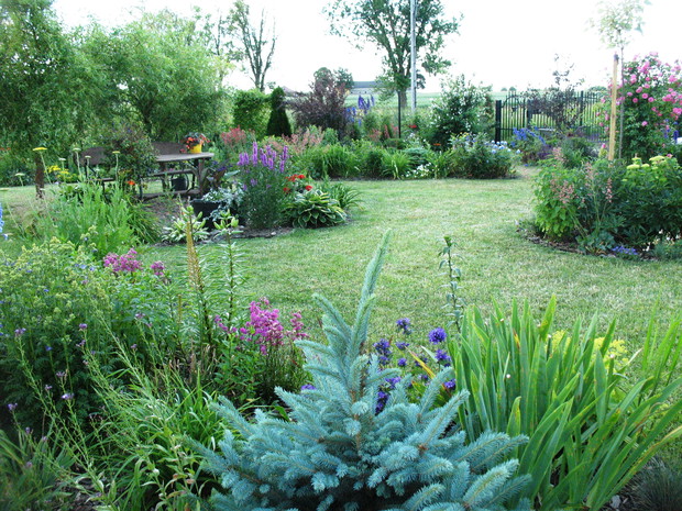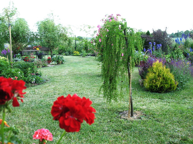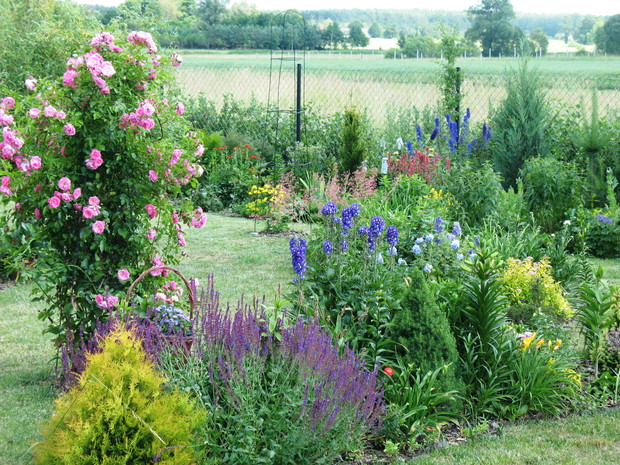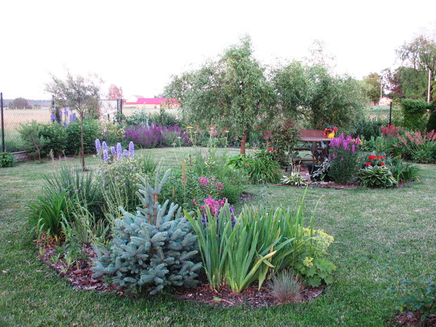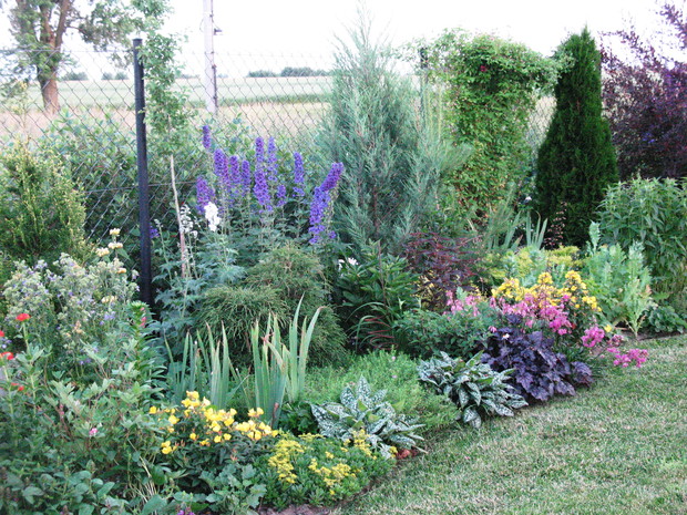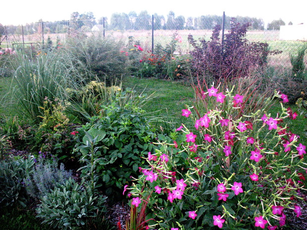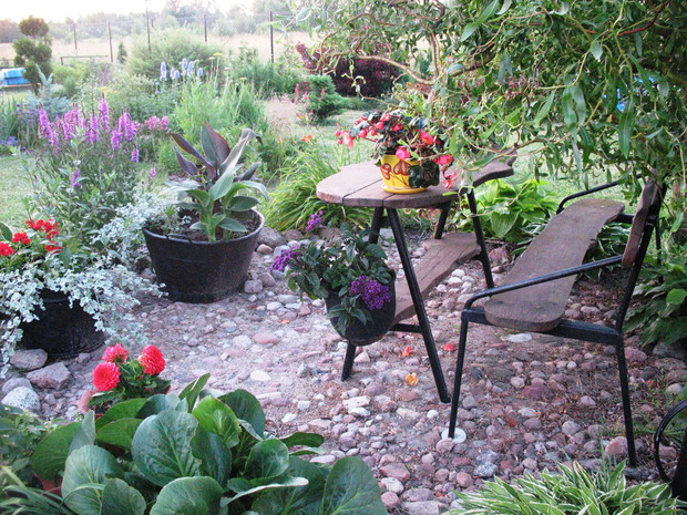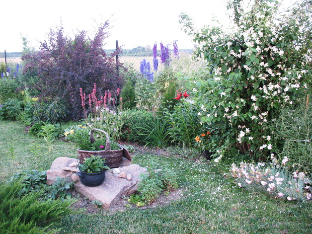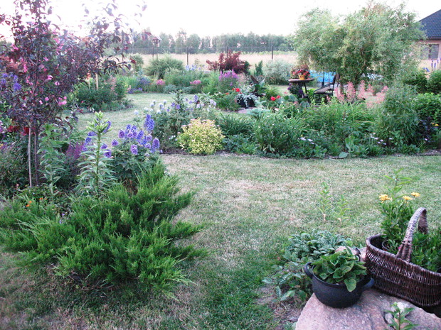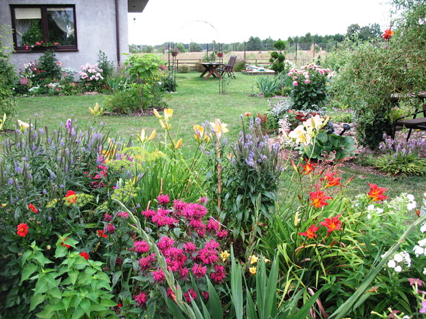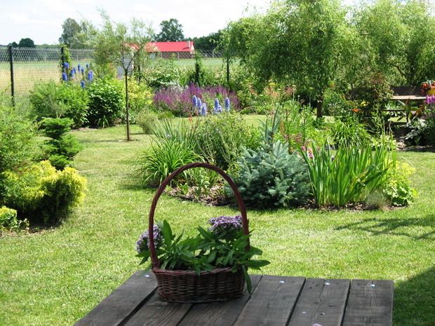 Zapraszam do mojego ogrodu, który mieści się na wsi pod Warszawą. Odkąd 5 lat temu przeprowadziliśmy się wraz z mężem i maleńkim synem do własnego domu to zaczęłam spełniać swoje marzenie o ogrodzie pełnym kwiatów zapamiętanych z ogrodu babci, pełnym oszałamiających zapachów i dobrej energii. Ogród nie jest duży- to zaledwie 1000 metrów kwadratowych, ale mnogość gatunków kwitnących sprawia, że stał się on enklawą pełną nektaru dla pszczół, trzmieli i innych owadów. Z ich powodu, a także z troski o środowisko postanowiliśmy prowadzić go w sposób ekologiczny. Mąż jest ogromnym fanem wszelkich gnojówek i wywarów, którymi podlewa i polewa warzywa w warzywniku i drzewka w sadzie. Gnojówki z mleczy, pokrzyw i napar z cebuli może nie mają przyjemnego zapachu, ale działają cuda na kondycję i zdrowotność roślin. Ja stosuję pod swoje kwiaty i krzewy kompost, który dojrzewa w kompostowniku zrobionym przez męża bądź obornik, który dostajemy od zaprzyjaźnionych sąsiadów. Owszem, czasami trzeba użyć chemii, ale są to sytuacje bardzo sporadyczne. W naszym pięknym miejscu, które sami tworzymy od podstaw nie brakuje tego co kocham najbardziej. Są to oczywiście kwiaty. I tak od najwcześniejszych miesięcy ciągle coś kwitnie i pachnie na rabatach. Wiosna to czas tulipanów, narcyzów, smagliczek i krokusów. Później pojawiają się azalie i rododendrony, łubiny, ostróżki i naparstnice. Lato to oczywiście róże, lilie, mieczyki i moje ukochane floksy, które pięknie do pary tańczą z jednorocznym tytoniem, aksamitkami i wilcami. Jednak najpiękniejszym czasem jest dla mnie późne lato i wczesna jesień, kiedy to ogród kąpie się w słonecznych barwach najpiękniejszych kwiatów świata-dalii oraz rudbekii i chryzantem. To czas kiedy ciężkie wiechy na krzewach pokazują hortensje bukietowe i trawy ozdobne. To najwspanialszy okres mojego ogrodu, którego koniec zwiastują coroczne, pierwsze przymrozki. Szkoda, ze tak szybko nadchodzą w rejonie kraju, w którym mieszkam. Wracając do struktury ogrodu-wszak nie tylko kwiaty go zdobią…. Poniewa poza rabatami lubię rośliny w pojemnikach, które niestety są bardzo drogie wymyśliłam, ze można je sadzić do starych garnków i balii oraz koszyków. Wszystkie ‘donice’ wygrzebuję w punkcie skupu złomu i na strychach znajomych. Później po oczyszczeniu maluję je na czarno by tworzyły spójną kompozycję. Myślę że wyglądają o niebo lepiej od plastikowych, sklepowych donic. Ustawiam je w różnych zakątkach ogrodu-głównie na placyku z kamieni polnych, który sama ułożyłam i przy domku ogrodnika, który powstał ze starego baraku kolejowego. Mój mąż to prawdziwa złota rączka. Odnowił barak, zrobił płotek dla warzywnika, kompostownik i wszystkie inne stałe elementy ogrodu, w tym karmnik do którego zlatują się przez cały rok różne ptaki. Ogród stał się dla mnie prawdziwą pasją, która co prawda uczy cierpliwości i pokory, ale także uwrażliwia moje dziecko na piękno natury, co w dzisiejszych czasach jest bardzo ważne. Pozdrawiam Ania :)