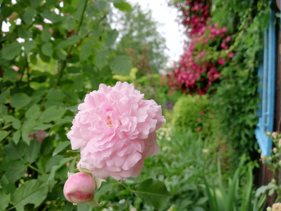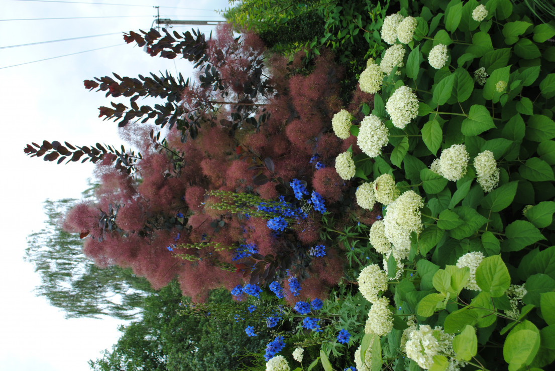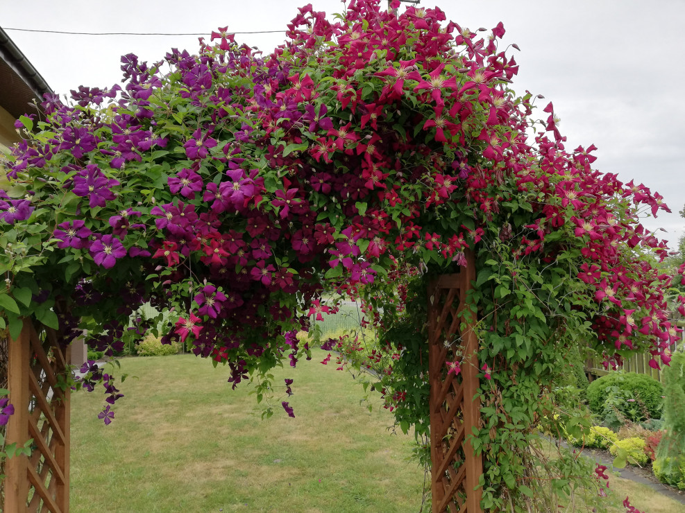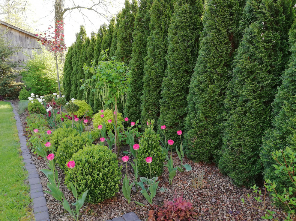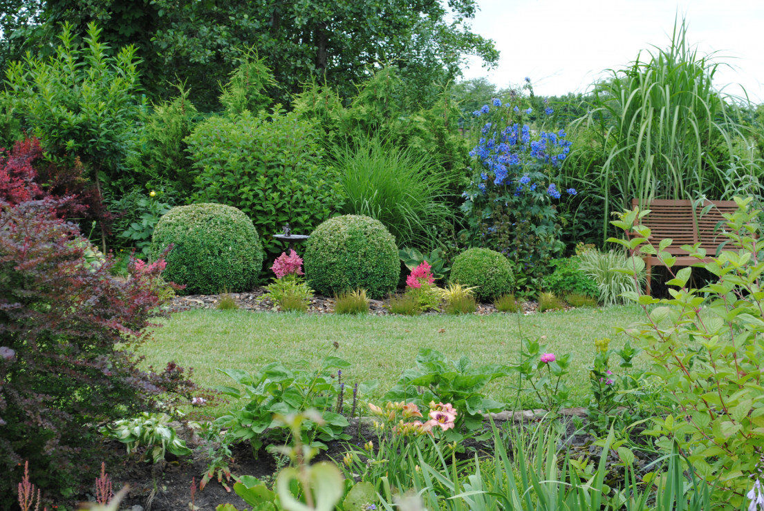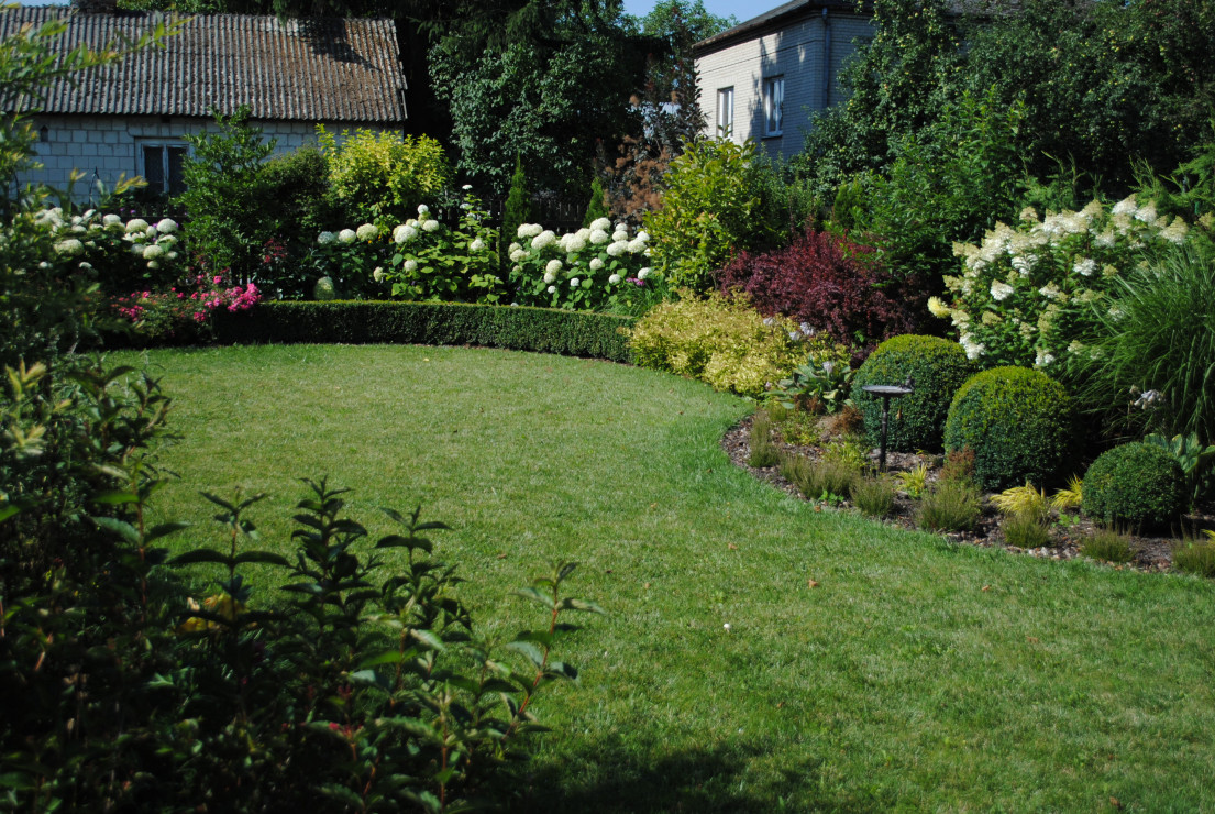 Witam i zapraszam do obejrzenia Naszego Ogrodu z niebieskim oknem ! Ogród ma 5 lat a powstał na totalnym ugorze . Przez działkę przepływa rów melioracyjny który kiedyś był czymś niechcianym ! Teraz cieszy oko dzięki zagospodarowaniu i dopasowaniu roślin na rabatach przy wodzie i nie tylko. Działka ma powierzchnię ok 30 arów znajdują się na niej budynki gospodarcze, plac zabawa dla dzieci oraz miejsce wypoczynkowe - placyk otoczony roślinnością . Ogród cieszy każdą porą roku.Wiosną królują kolorowe tulipan i inne cebulowe . Latem oczy cieszą byliny ostróżki, liliowce i kosaćce . Nie wyobrażam sobie żeby na rabatach brakowało host hortensji i traw!! Urzekają mnie swoim pięknem zwłaszcza na jesiennych rabatach . Niezawodne zestawienie hortensji rozchodników i traw sprawia że każda chwila spędzona w ogrodzie bardzo cieszy! Zima jest równie piękną porą roku gdzie powiązane w chochoły trawy kołyszą się na wietrze. Nasz ogród choć młody ma sporo mieszkańców dzikie kaczki ,jeż czy wiewiórka czują się w nim dobrze!