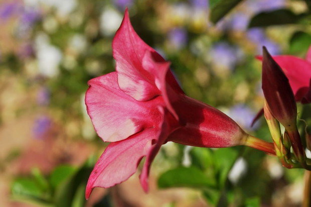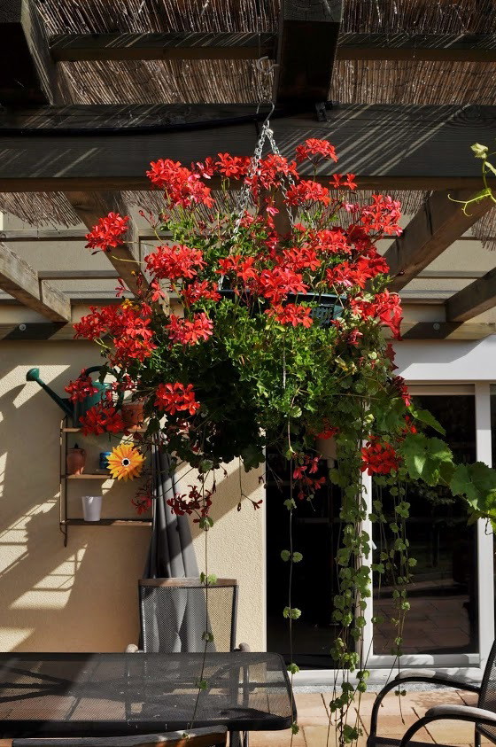 W moim działkowym ogrodzie dominującą rolę odgrywają wiszące donice z czerwonym Milinem Amerykańskim (Campsis Radicinas), donice wyglądają bardzo efektownie, szczególnie teraz, gdy pełne są kwiatów, sam Milin nie wymaga pracowitej opieki, choć niekontrolowanie może go przybyć zbyt dużo. Jako bonus dodaję zdjęcie jednej z moich poziomek, które również znajdują się w moim ogródku, pozdrawiam.