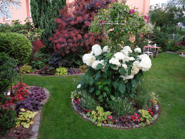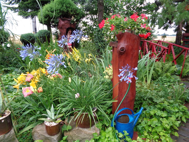 Z ogromną przyjemnością zapraszam do naszego ogrodu do przyjrzenia się z bliska roślinom, które postanowiły zagościć w ogrodzie. Trudno jest opisać własny ogród. Dla mnie jest oazą, spokoju, wytchnieniem i radością a mimo że ogrodem zajmuję się długo, ciągle uczę się na błędach. Mój ogród w skrócie... budzi mnie śpiewem ptaków o poranku, daje chwile wytchnienia na każdy dzień :) Po trochu rustykalny, wiejski - ogród żeby cieszył musi być wciąż tworzony, zmieniany, dopasowany dla całej rodziny. Jest taki nasz, stworzony własnymi pomysłami i własną pracą. Aby wszystko co roku tak pięknie wyglądało i rosło w ogrodzie trzeba poświęcić swojego czasu i serca <3 Ja nie widzę końca urządzania naszego ogrodu - sama rozsadzam własne byliny, krzewy za nie małe pieniądze. Ale można też kupić coraz więcej interesujących roślin, istnieje więc pokusa i myślę że dosadzenie nowych okazów i nowości będzie trwało ciągle... Ogród kwiatowy wymaga sporej pracy, jednak jego piękno z czasem wynagrodzi nam nasz wysiłek włożony w pielęgnację roślin. Zanim założymy nasz ogród, musimy pomyśleć o rozmieszczeniu roślin czyli przygotować plan obsadzeń. Ogród powinien nam służyć do wypoczynku i miłego spędzania wolnego czasu w gronie rodzinnym i przyjaciół na łonie natury, przy blasku i zachodzie słońca, kropli deszczu, odpoczywając i rozmyślając przy śpiewie ptaków, widoczków na piękne kolorowe kobierce kwiatów. A do tego unoszących wonnych zapachów kwiatowych dodaje nam energii i siły na każdy kolejny dzień. W ogrodzie oprócz roślin ozdobnych powinno znależć się miejsce na kącik sadowy oraz wszystkie warzywa i zioła niezbędne potrzebne do kuchni. Serce się raduje gdy po roku starań i pielęgnacji nasz ogród odwdzięczy nam się tym co ma w sobie najpiękniejszego, to motywuje do dalszej pracy i nauki by z roku na rok udoskonalić to co tworzymy oraz poznawać nowe rośliny i kolekcjonować je w swoim ogrodzie pozdrawia Grazia :)