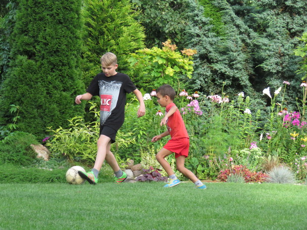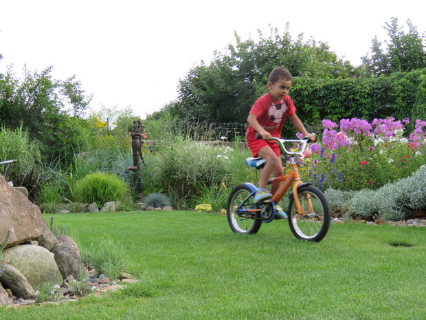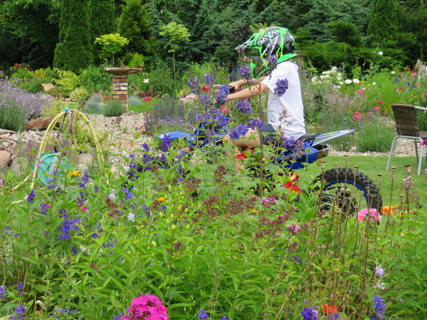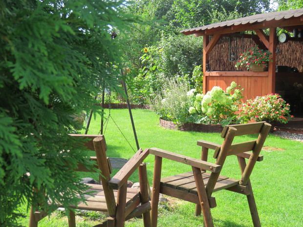 Nasz ogród to nasz letni dom. Spędzamy w nim dużooooooo… .czasu. Przez wszystkie pory roku cała rodzina bardzo aktywnie uczęszcza w ogrodzie. Nie straszna nam niepogoda, zimno czy słota. Różne miejsca w ogrodzie dostosowane są do różnych sytuacji i anomalii pogodowych. Duża, przestronna altanka pod orzechem w otoczeniu kwiatów to ulubione miejsce domowników i wszystkich nas odwiedzających. Dla każdego z domowników nasz ogród to miejsce do realizacji swoich pasji i zainteresowań. A że przestrzeni jest sporo to można pojeździć na crosie, rowerze, rolkach. Dzięki bramce i zielonej murawie można pograć w piłkę nożną, ale też w koszykówkę czy siatkówkę . Dla mnie to obcowanie z przyrodą, realizacja pomysłów, fotografowanie, dla pozostałych uprawianie sportu czy majsterkowanie.
