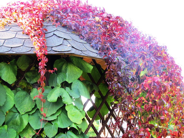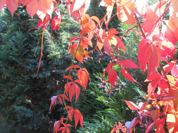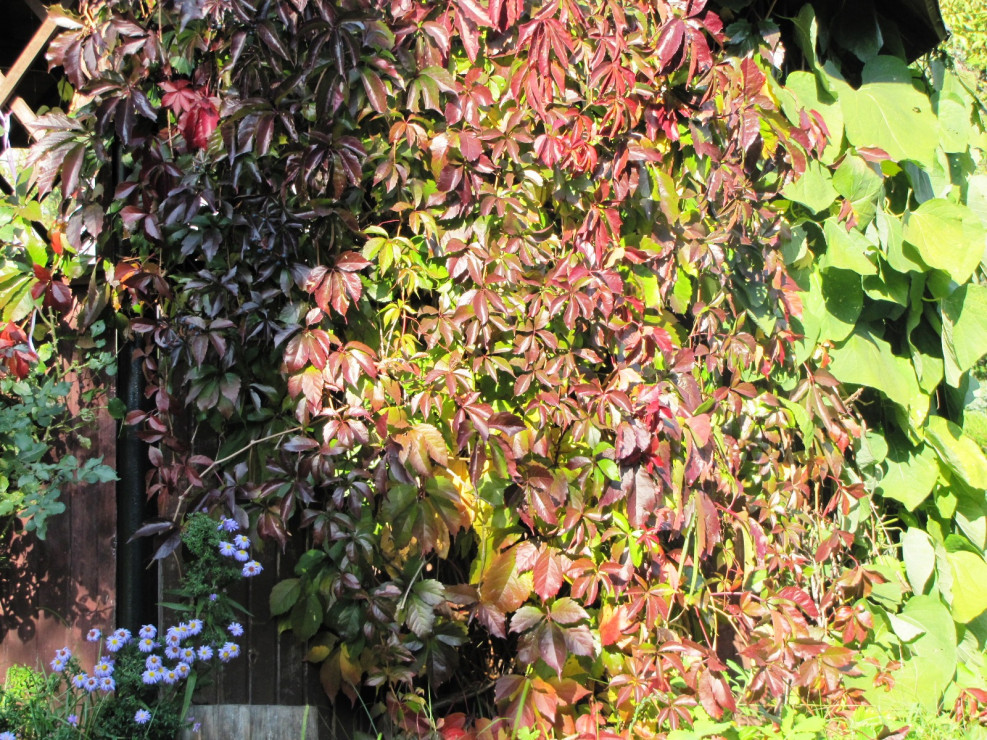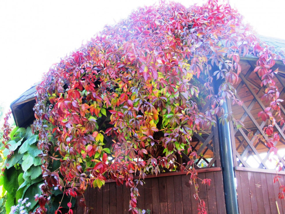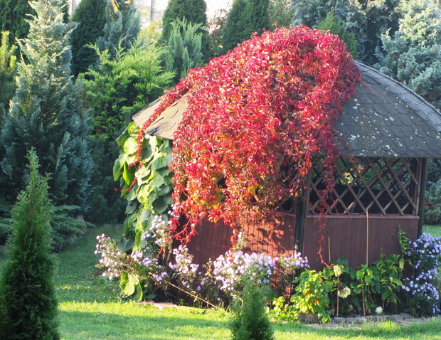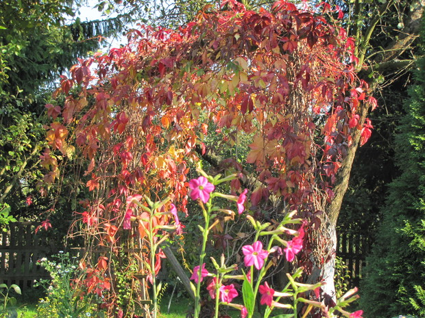 Winobluszcz, klon palmowy, perukowiec, purpurowe astry i chryzantemy to dominanci w październikowym ogrodzie............................................................................................................................................................................................................................................