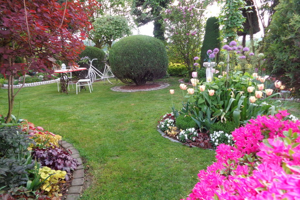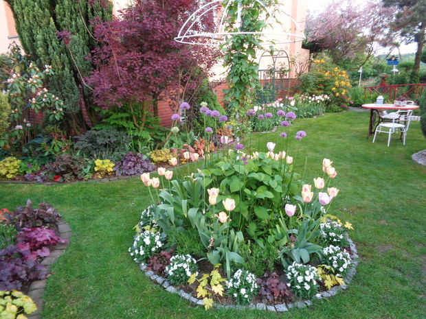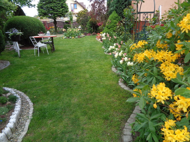 "Ogród jest nie tylko rozkoszą dla oka, ale i ukojeniem dla duszy, łagodzi gniew, namiętności i daje przyjemność, która jest przedsmakiem raju" To taki nasz ogród przepelniony wiosenna świeżością połaczony kwitnacymi kwiatami i zielona trawą taki doskonały w pelni wiosennej porze. W pełni podzielamy myśl Charles’a D. Warner’a, że ’’posiadanie kawałka ziemi, uprawianie go, sadzenie roślin, patrzenie jak rodzi się nowe życie – to największa radość i satysfakcja człowieka.”