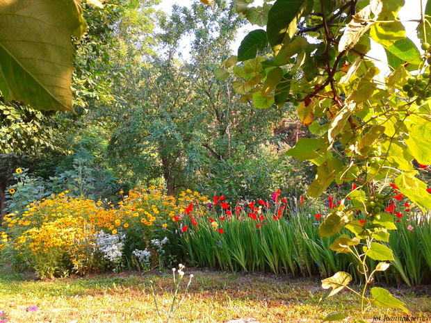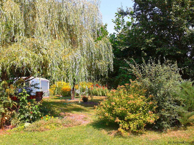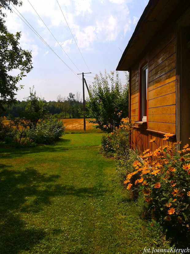 Witam! Po raz kolejny prezentuję skrawek mojego wiejskiego zakątka... Zapraszam.... przysiądźcie na chwilkę, a ja z miłą chęcią podzielę się z Wami jego zapachem.... Mój ogródek bywa niesforny - raz amazoński busz... innym razem rajski ogród..... Dominują byliny, ale wraz z nimi konkurują rośliny jednoroczne, które od kilku lat wysiewają się praktycznie same... a ja im tylko czasami robię "przeprowadzkę" :) Każdego roku troszkę inny... bo z jednorocznymi kwiatkami tak już jest, że raz aksamitka, raz cynia... a jeszcze innym razem ostróżka. Nigdy nie planuję, co gdzie ma rosnąć... sadzę tam gdzie widzę jakiś wolny skrawek ziemi.... a potem już tylko patrzę jak rośnie...tu podeprę, tam podleję "pokrzywą" jak widzę, że coś słabo rośnie...a tam już zarasta chwast, że kwiatków nie widać :) No i tak to mniej więcej wygląda ;)