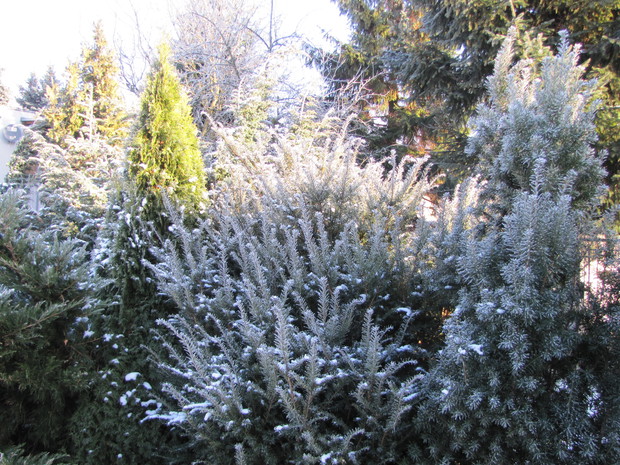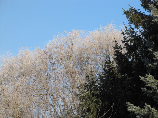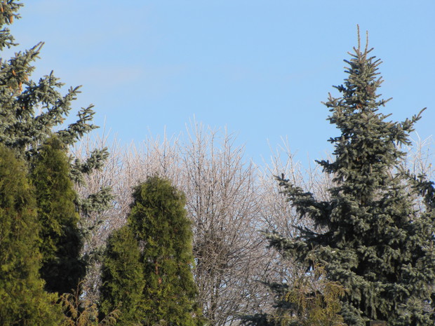 Popruszyło śniegiem, przymroziło i zrobiło się biało, zimowo. Ale najpiękniejsze widoki zimowego krajobrazu to połączenie:szadzi, błękitu nieba i blasku słońca. Taka zima to marzenie!