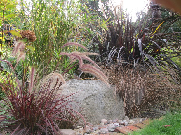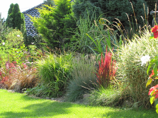 Trawy ozdobne stały się bardzo modne w ostatnim czasie. Różnorodność jest tak duża, że każdy może sobie pozwolić na posiadanie ich w swoim ogrodzie. W zaleźności od gatunku mogą zdobić mały, duży ogród lub rosnąć w pojemnikach na tarasach przez cały rok. Moja rabata z trawami otacza małe oczko wodne i przylegający do niej skalniak, liczy sobie już kilka lat i ciągle się powiększa o nowe ciekawe nasadzenia. Znajdują się tam trawy byliny, trawy niezimujące w gruncie i i trawy jednoroczne