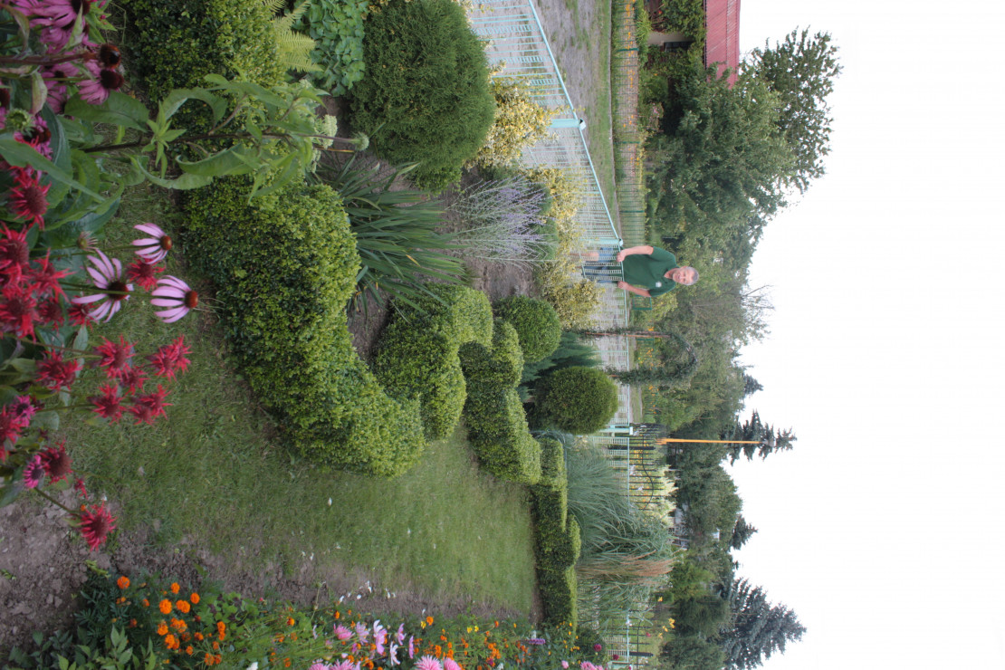 Pragniemy przedstawić naszą działkę znajdującą się na ROD Radość w Starogardzie Gdańskim. Gospodarzymy na 400 m2 od ośmiu lat. początkowo była to działka typowo ogrodnicza z czasem postanowiliśmy zmienić ją na uprawno- rekreacyjną. Dosyć sporą część działki zostawiliśmy na warzywniak i szklarnie, aby nasze wnuczki mogły uczyć się jak się uprawia warzywa. Uwielbiamy różne kolorowe rośliny. Topiany przy płocie powstały, gdy tuje stawały się za wysokie. Uformowaliśmy je sami. Wśród traw naszą chlubą jest "pampasowa", która zakwitła w ubiegłym roku. Zimuje ona w szklarni. Mimo wielu starań i ciężkiej pracy działka ta jest dla nas i naszej rodziny oazą spokoju. Pozdrawiamy Ewa i Jerzy Bigus