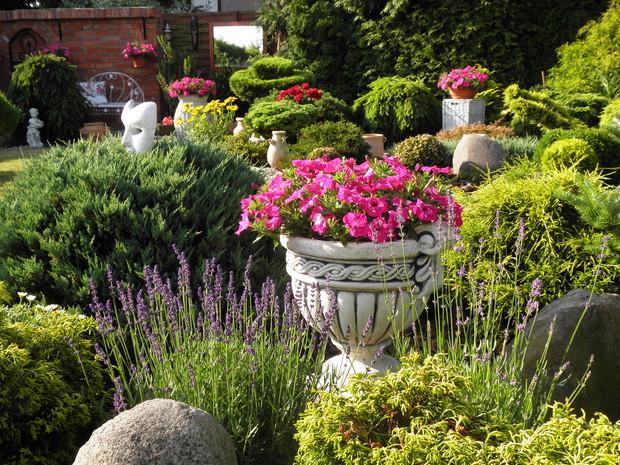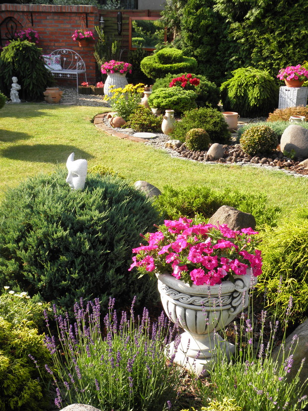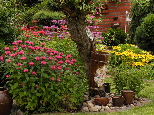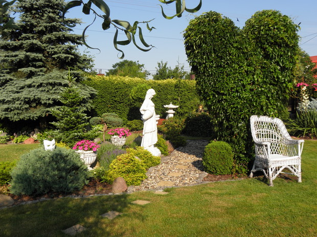 Raj Małgosi to moje miejsce na ziemi bez, którego nie umiałabym już żyć. To taka moja miłość, oczywiście nie jedyna. Powstawał kilka lat, z dnia na dzień, z miesiąca na miesiąc. Przynosił ukojenie, był i nadal jest najlepszym terapeutą. Ciągle coś w nim przybywa, również ubywa jak to w ogrodzie, czasami rośliny przechodzą naturalną selekcję. Ale w ich miejsce sadzę inne, również dosadzam, zmieniam. Jest bardzo rozpoznawalny dzięki murowi z cegły rozbiórkowej, fontannie i sercu, które powstało na starej jabłonce, a które od ubiegłego roku formuję. Mam nadzieję, że Raj Małgosi skradnie również WASZE serca.