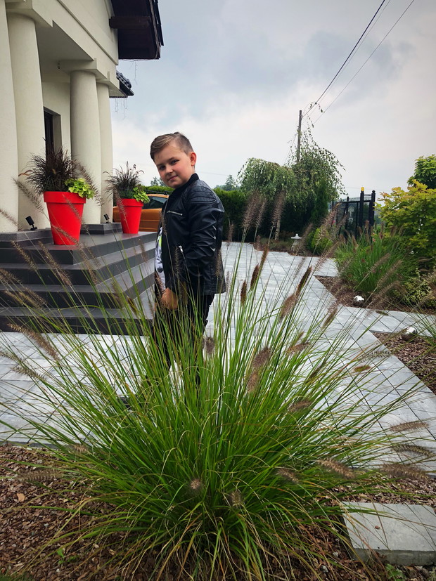Ja i synek w naszej oazie. Nasz ogród buduje samodzielnie od 8 lat. Taka oto moja pasja. Staram się przekazać takie zamiłowanie do przyrody synkowi, który też uwielbia ogród i często pomaga mi w pracach. Ogród nasz jest utrzymany w stylu raczej nowoczesnym z elementami ogrodów japońskich. Uwielbiam latarnie , które podświetlam taśmi led, trawy ozdobne muszą być na każdej rabacie. Taki to mój pomysł na ogród.