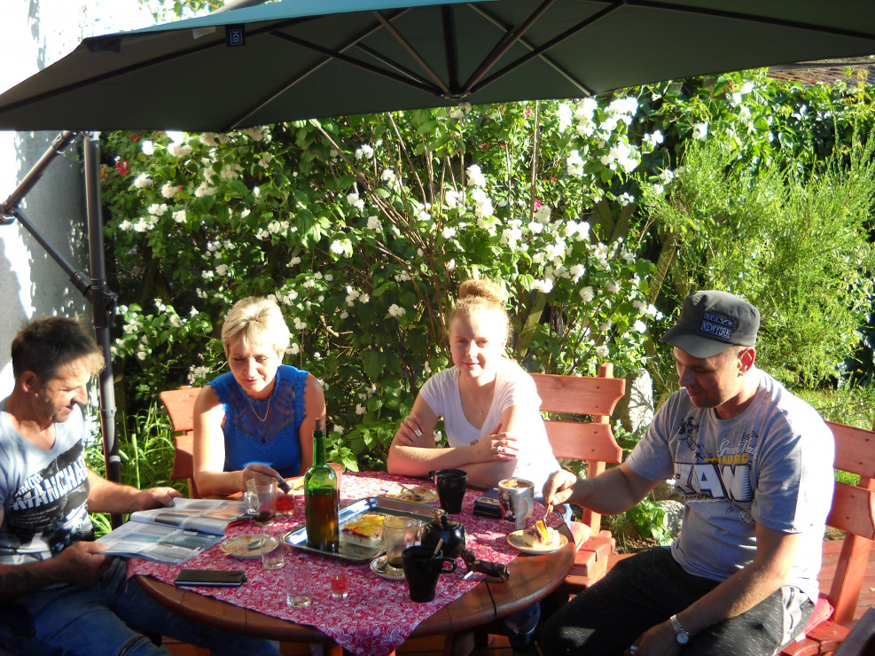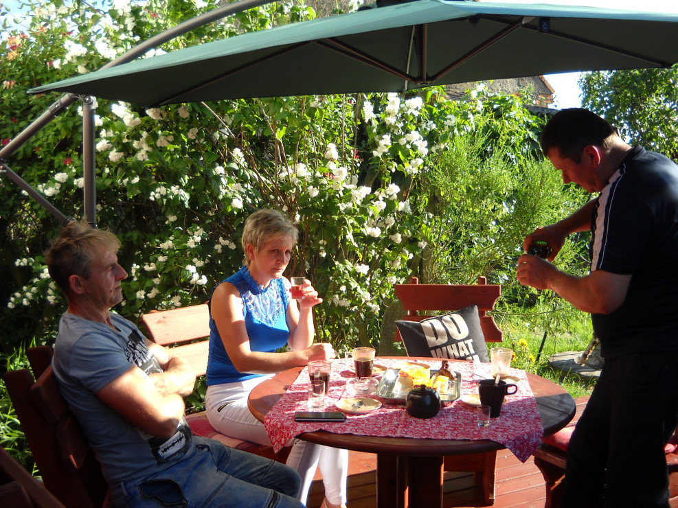 Ogród to miejsce relaksu tu odpoczywamy i wspólnie z rodzinką i bliskimi spędzamy miło czas.Wspólne popołudnie przy kawie na tarasie.Wieczory przy grilowaniu i łowieniu ryb.Każda wolna chwila jest spędzona przez nas w miłym towarzystwie naszych bliskich.............................................................................................................