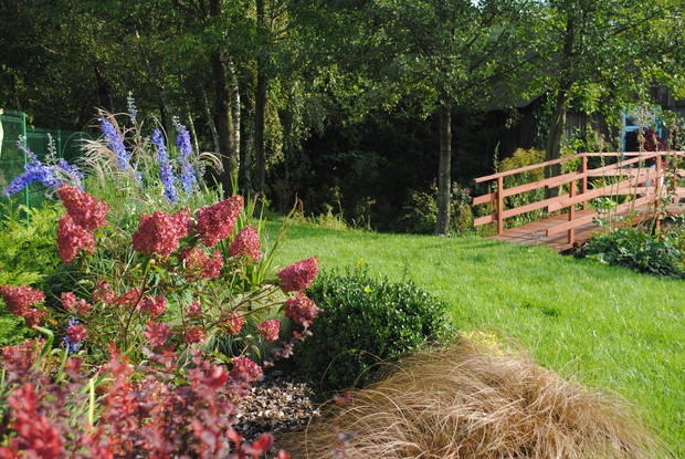 Ogród jest ulubionym miejscem zabaw dzieci maja w nim kryjówki i placyk zabaw. My dorośli także lubimy spędzać w nim wolny czas na biesiadowaniu z rodzina i przyjaciółmi. Jest to nasze miejsce w którym relaksujemy się po całym dniu. Strumyk który płynie nadaje ogrodowi nie powtarzalnie naturalny klimat .Jesteśmy bardzo szczęśliwi że posiadamy własna oazę spokoju!