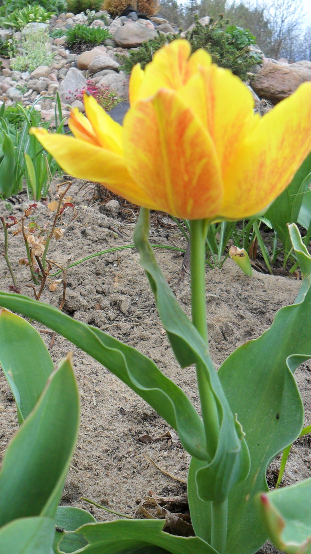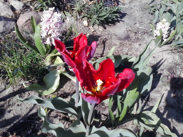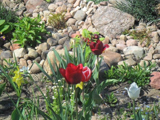 Kwiecień to okres kiedy mój ogród zaczyna nabierać kolorów. Kwitną w nim rośliny cebulowe takie jak narcyzy, hiacynty, tulipany i śnieżek, który ze względu na to, że nie zimuje w naszym klimacie w ogrodzie trzymam w doniczce. Kwitną również krzewy na pomarańczowo pigwowiec, a na żółto mahonia. Skalniaczek zdobi: skalnica, skrzydlinka ...