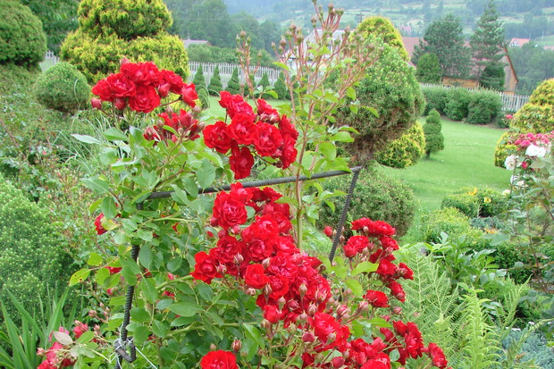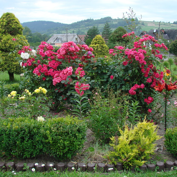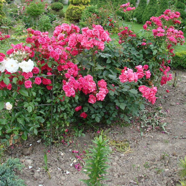 Na rabatach w swoim ogrodzie pielęgnuję kilkanaście gatunków róż, które w okresie kwitnienia zachwycają przepięknymi barwami i zapachami. Róże te tworzą swoiste kolorowe wysepki, które przyciągają swoimi barwami wiele gatunków motyli. Róże to bardzo wrażliwe kwiaty, narażone niejednokrotnie na przemrożenia i inwazje mszyc.