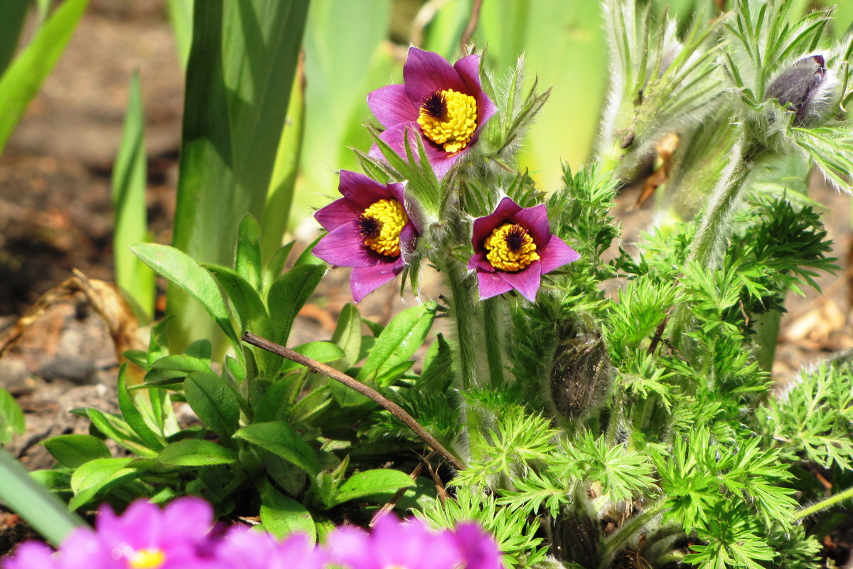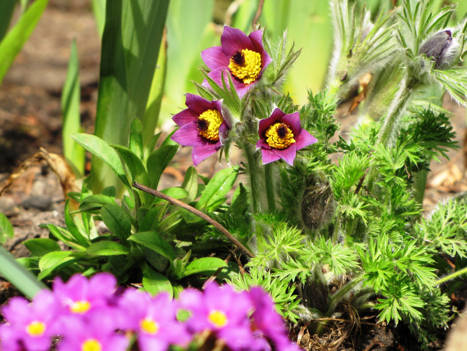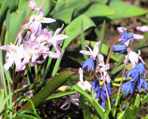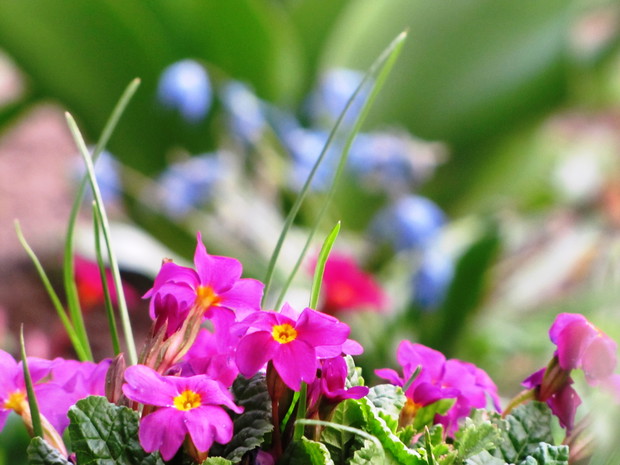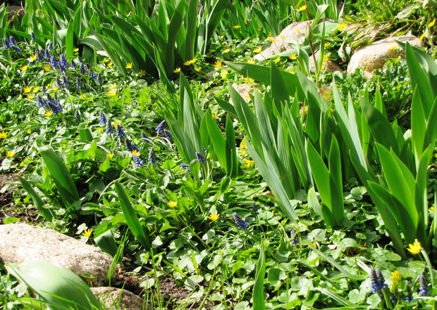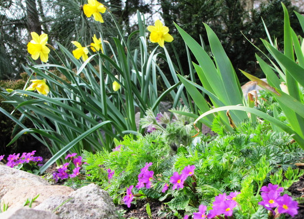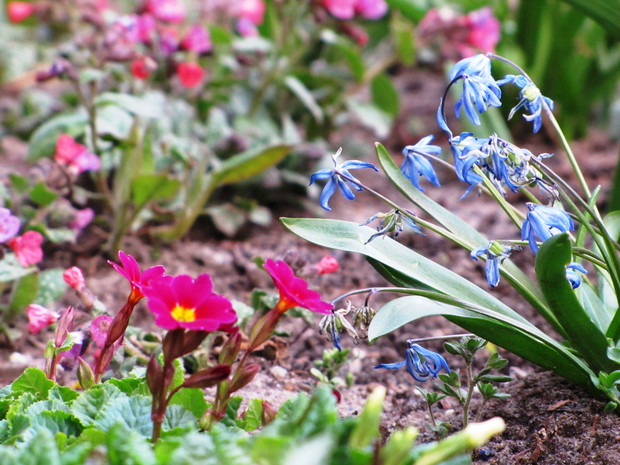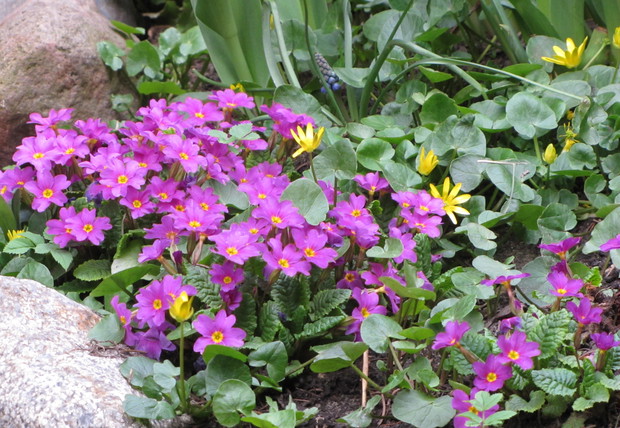 Niebieski szafirki i cebulice, różowe i fioletowe pierwiosnki i sasanki, żółta forsycja, ziarnoplon i żonkile......................................................................................................................................................................................................................................