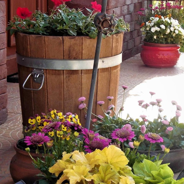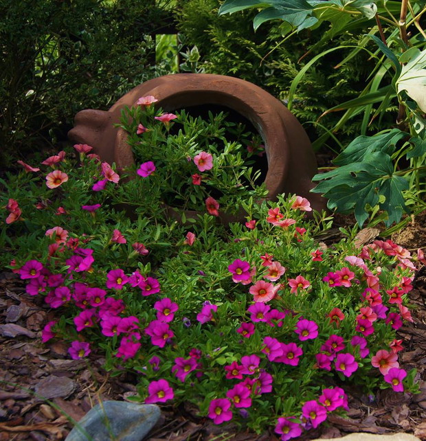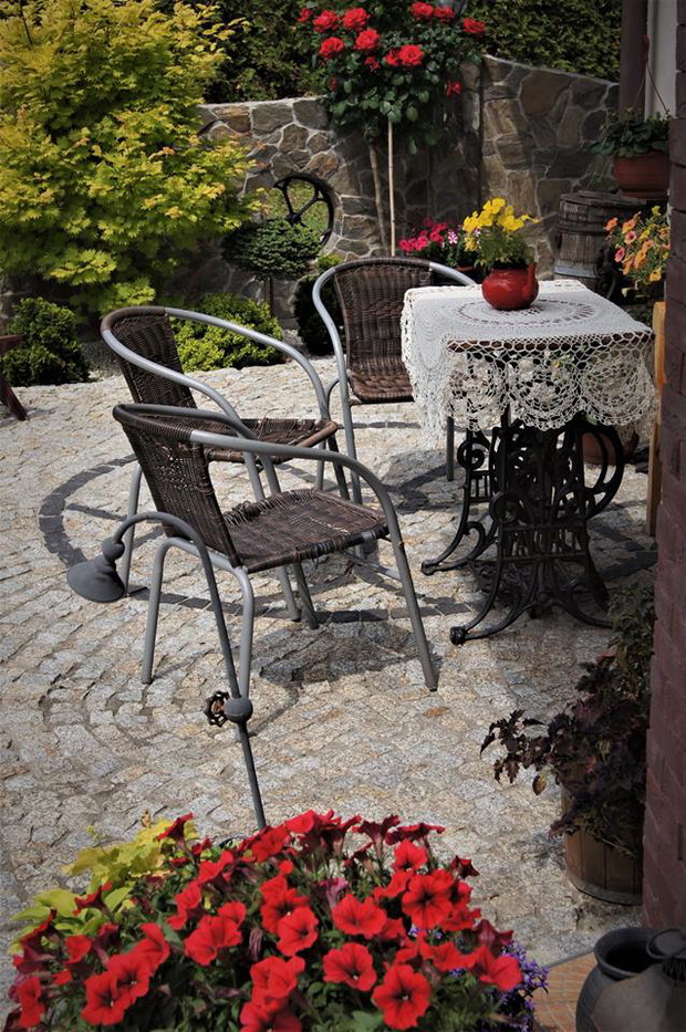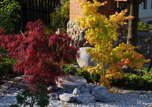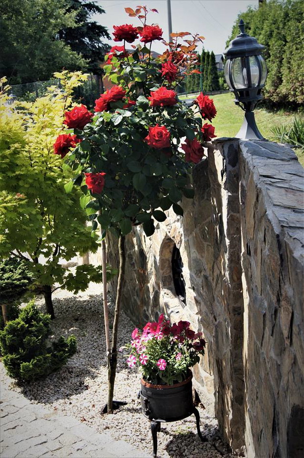 Ogród tworzymy od 6 lat. Część ogrodu to tematyka rustykalna; jest i część japońska.... zapraszamy na wirtualny spacer. Mamy nadzieję, że chociaż trochę stare murki, żeliwne dodatki, kamień i woda w ogrodzie Państwa zachwycą i zainspirują :) Kolekcjonujemy klony palmowe i żurawki. Jest też wiele kwiatów ozdobnych i bylin. W ostatnich dwóch latach coraz bardziej zachwycają nas hortensje ... mamy jeszcze kilka pomysłów i niezagospodarowanych części działki także nasza pasja i hobby na pewno będą się rozwijać a ogród zyska jeszcze bardziej wyrazisty charakter :)