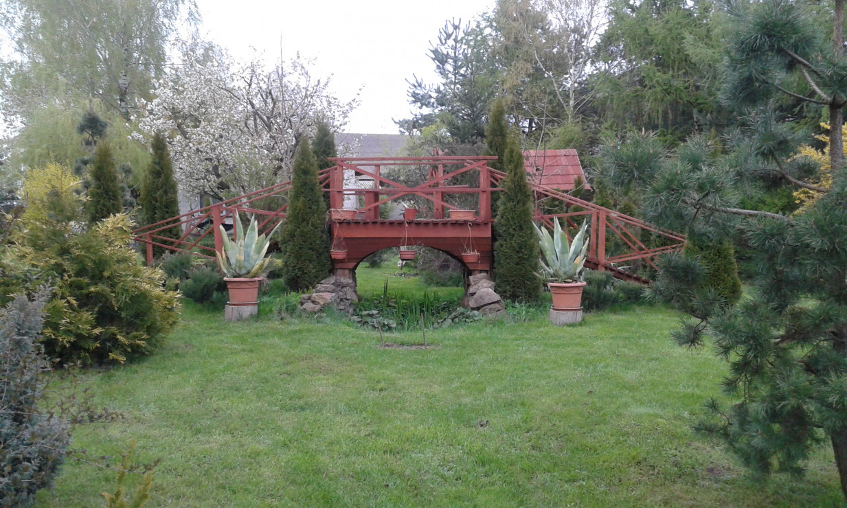 Najważniejszym elementem naszego ogrodu i jednocześnie ulubionym miejscem dziecięcych zabaw jest most, który na wstępie miał być mostkiem weneckim, ale podczas budowy rozrósł się do znacznych rozmiarów i obecnie stanowi ,,serce" ogrodu. Przyjemnie jest usiąść na ławeczce na moście i z wysokości obserwować zmiany zachodzące w przyrodzie oraz słuchać śpiewu ptaków.