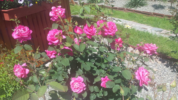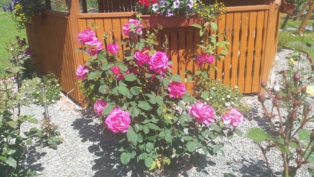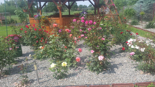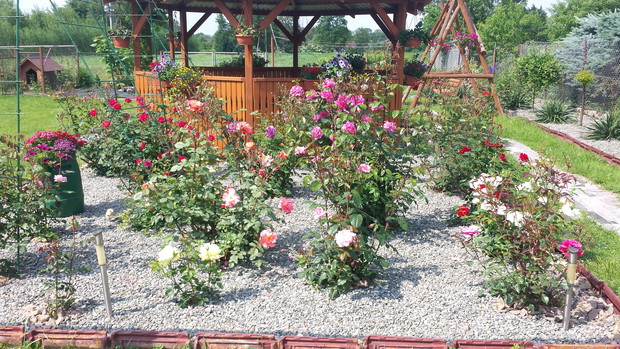 W moim ogrodzie zakwitły piękne róże które wieczorami upajają swoimi zapachami. Najwięcej jest róż w kolorze różowym i jego odcieniach,różnorodność kwiatów jest duża,od różyczek miniaturowych osiągających średnice kwiatów zaledwie 4cm po ogromne mające średnice prawie 20cm. Najpiękniej pachną róże w cytrynowym kolorze i ciemnych różach,wieczorem nie sposób przejść obok nich obojętenie aby nie skusić się powąchać,woń róż przy delikatnym wieterku roznosi sie po całym podwórku,przyjemnie jest sie relaksować leżąc na chamaku obok róż mając takie niesamowite zapachy obok siebie.