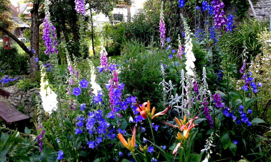W moim ogrodzie rośnie bardzo dużo gatunków drzew,krzewów,kwiatów i ziół.W tym roku pogoda sprzyjała roślinom,wiec wyrosły wspaniałe okazy.Szczególnie popis dały róże,naparstnice, ostróżki,dzwonki,pysznogłówki,rudbekie.Na wiosne wspaniale kwitły tulipany ,korony cesarskie, żarnowce,niezapominajki,prymulki,wrzośce.W tamtym roku sprowadziłam do ogrodu kuklik .Niesamowita roślinka.Nie dość,że kwitnie pięknymi kwiatami,to jeszcze liście rozrastają się w szybkim tempie i po oberwaniu kwiatów powtarza kwitnienie. Co roku powstaje w ogrodzie jakaś niewielka budowla ogrodowa,I tak dwa lata temu powstał kamienny grill,nad paleniskiem zawisł ruszt, na którym zmieści sie mięsko/i nie tylko/,dla całej rzeszy głodomorów. W zeszłym roku wybudowaliśmy huśtawkę ogrodową ,która spełnia rolę kanapy ogrodowej dla mojego męża , po obfitym posiłku.Mnie pozostaje hamak. Gdy przyjdzie wiecej gości muszą sie zadowolić ławką i stołkami wokół ogrodowego stołu,ale i tak prędzej czy póżniej ,wszyscy gromadzą się przy samym ognisku i wtedy jest fajna atmosfera,opowieści,kawały,a czasem śpiewy itp. W tym roku powstała studnia,która zbiera wodę deszczową z rynien.Tym sposobem mam wodę do podlewania roślin i oszczędzam drogocenną wodę pitną.Muszę zaznaczyć,że wszystko co powstaje w naszym ogrodzie jest robione własnoręcznie przez domowników,szczególnie przez męża i syna Konrada . W tym roku powstaje w ogrodzie wrzosowisko.Na wiosnę posadziłam wrzośce,a teraz zasadzę wrzosy.