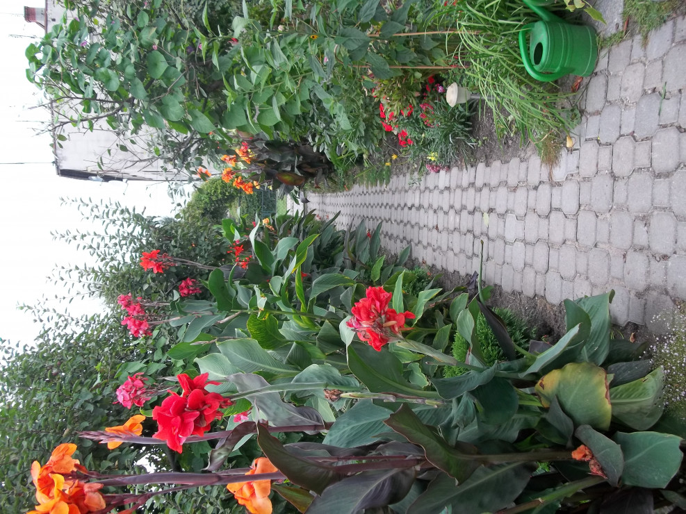 ogród w pełni lata,kwitnaca cudnie glicynia ,która upaja kolorytem i zapachem,przyciaga roje pszczół,stanowi niebanalne tło dla zieleni ogrodu,sciezka otoczona kanami siegajacymi ramion,i wiecej.mini japonski ogród,z azaliami ,klonem.bonsai,w tl;e katalpa dajaca cien.formowane iglaki z niebanalnymi formami.