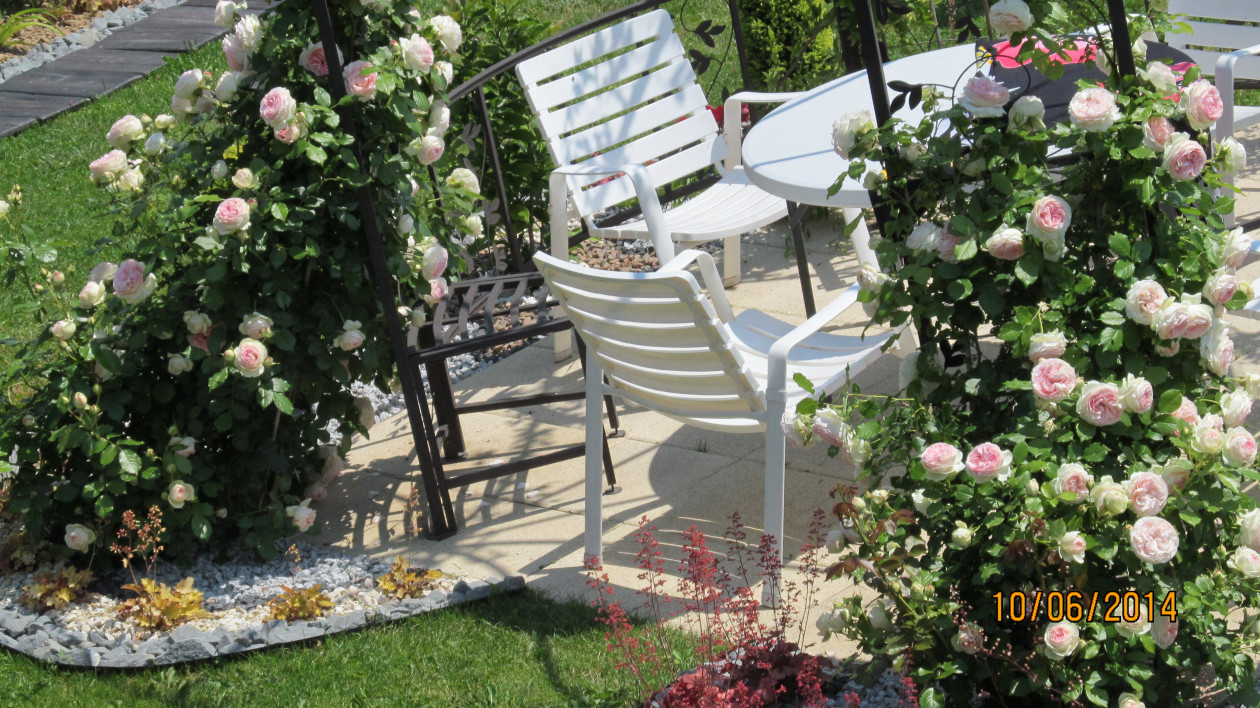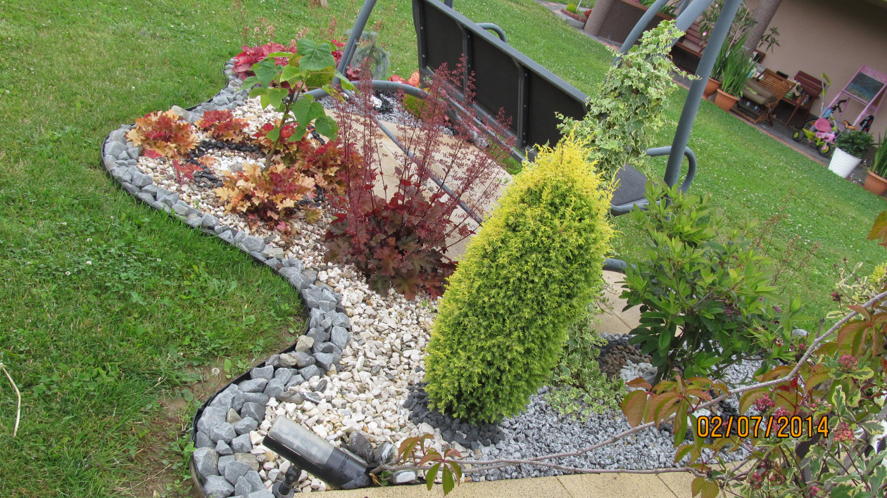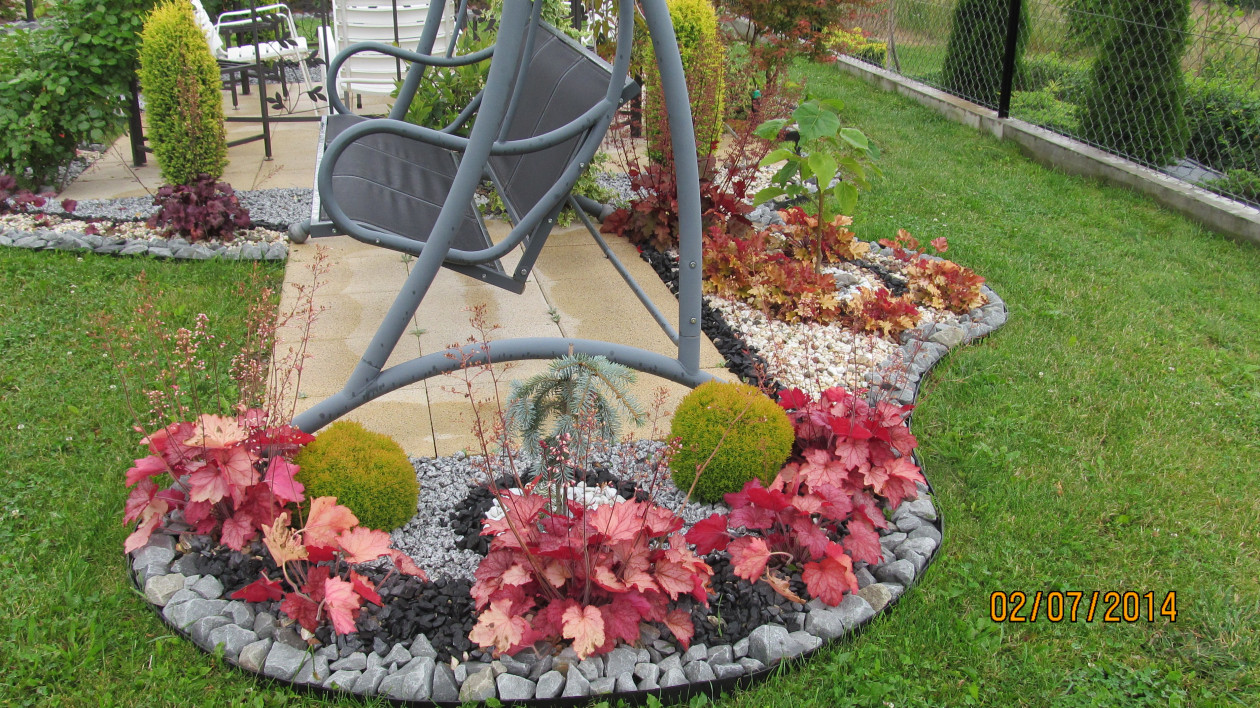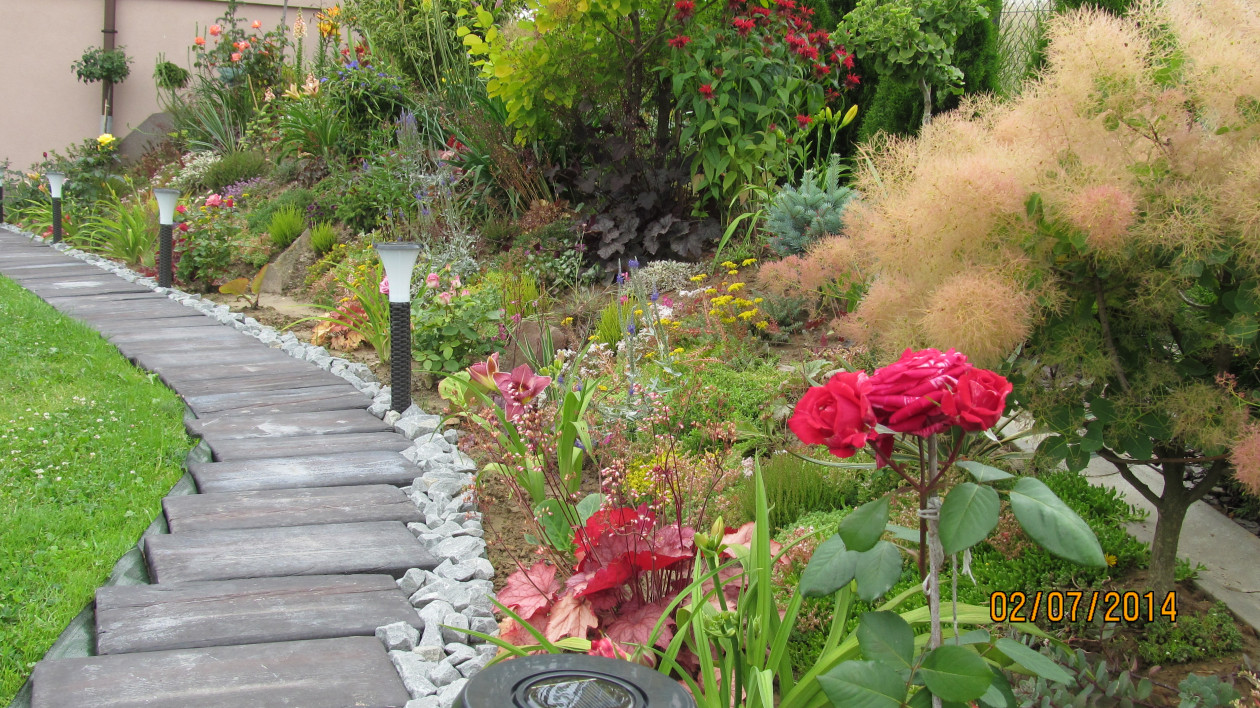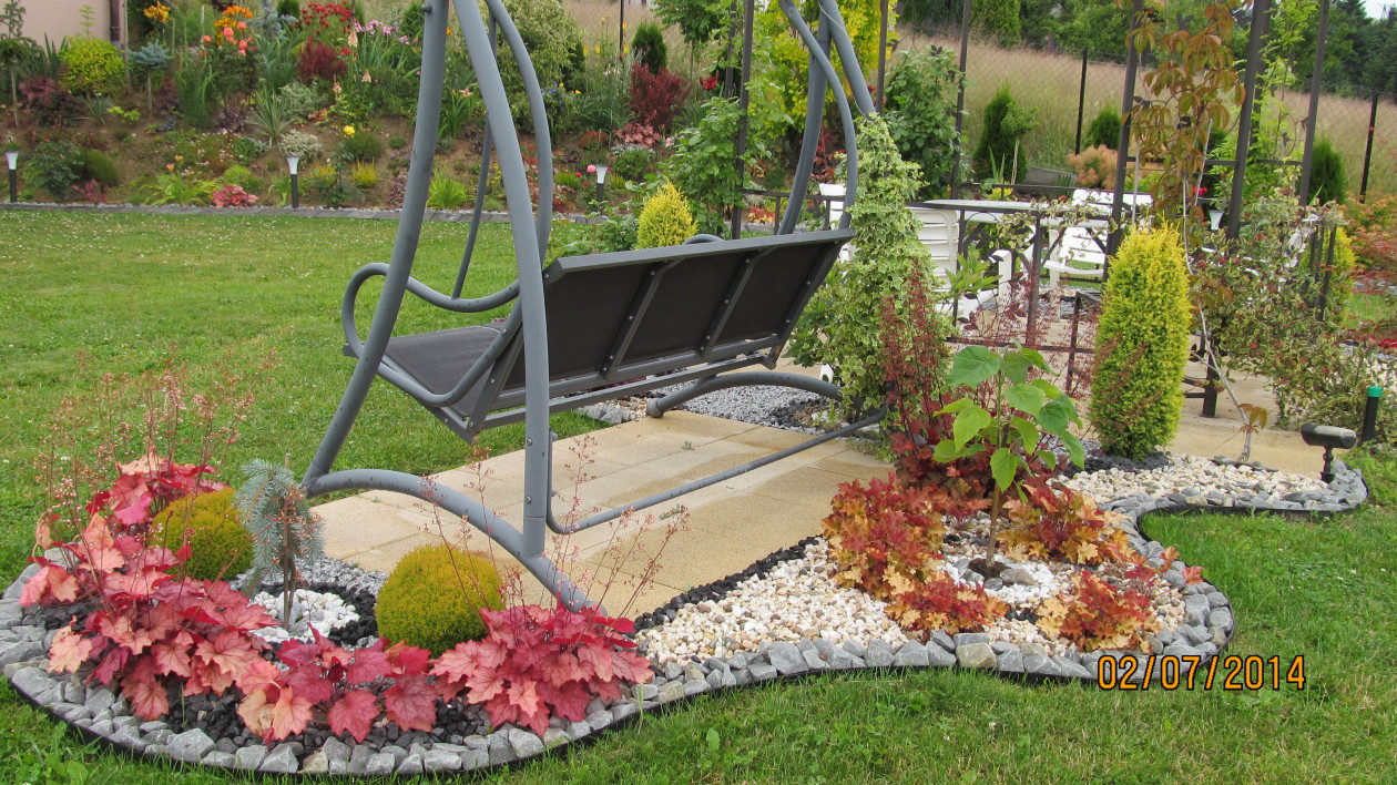 Mój ogród powstaje już siedem lat i ciągle go modernizuję szukając doskonałych form i kompozycji. Ulubionym moim miejscem wypoczynku w ogrodzie jest altana pośród kwitnących róż . Siadając tam ze szklaneczką kawy czuję że czas stoi w miejscu a ja jestem bliżej raju . Ogród to też miejsce zabaw dla dzieci . Co roku z utęsknieniem wyczekuję czasu kiedy kwitną lilie róże oraz liliowce które najbardziej uwielbiam bo przypominają mi że to już wakacje . Ostatnio bardzo polubiłam niebieskie iglaki które wiosną i nie tylko są zachwycające . Z niecierpliwością czekam kiedy buki podrosną i nabiorą formy płaczącej . Kiedyś przeczytałam fragment jakiegoś mądrego człowieka że " jak chcesz być szczęśliwy to zasadź ogród " . Przyznaję że to czysta prawda . Nic tak mnie nie relaksuje jak praca w ogrodzie , wtedy zapominam o troskach dnia codziennego . Moją pracę i czas poświęcony tym rośliną rekompensuje efekt końcowy czyli kwitnienie tych roślin i drzew.
