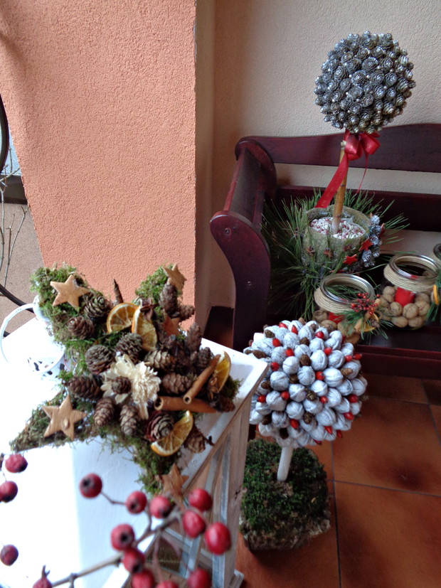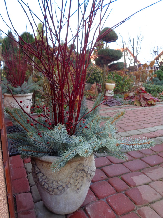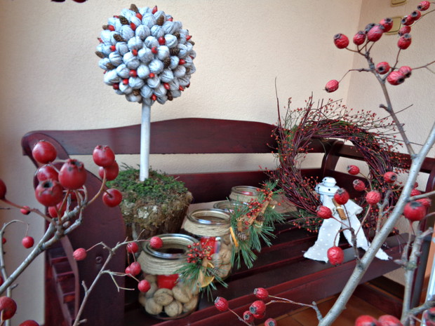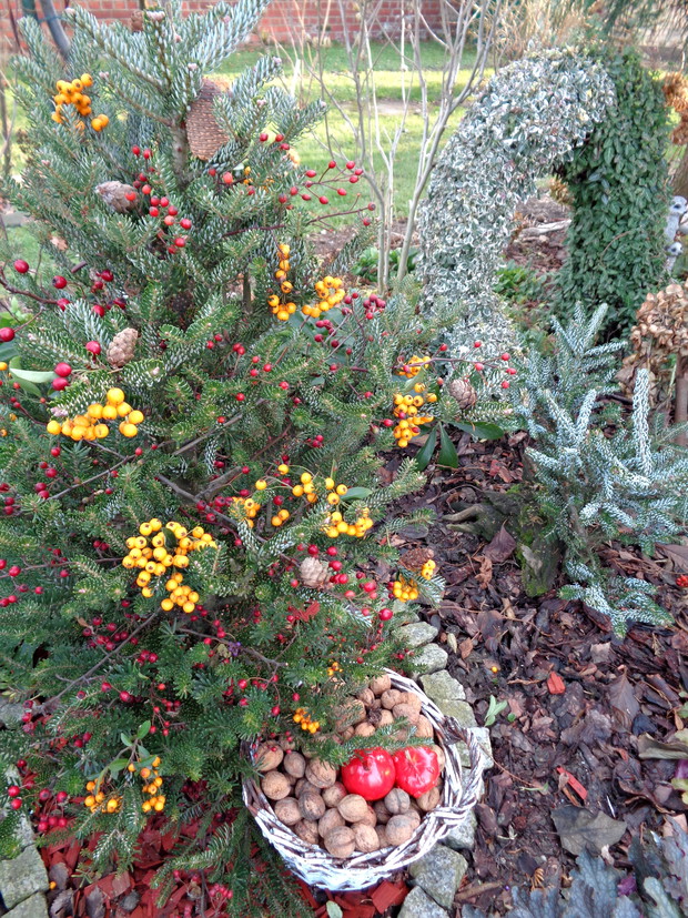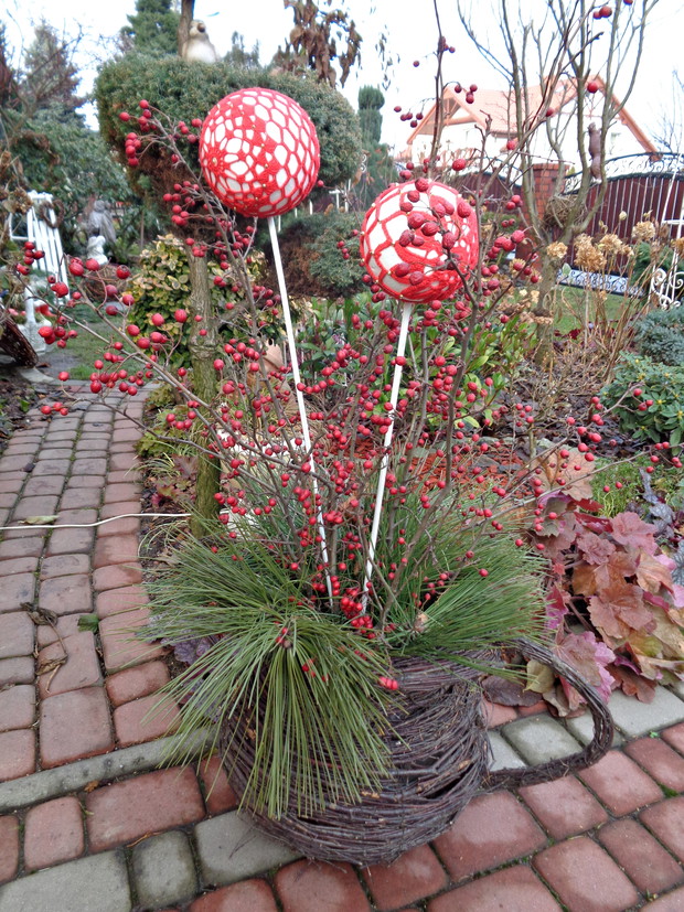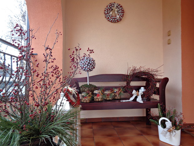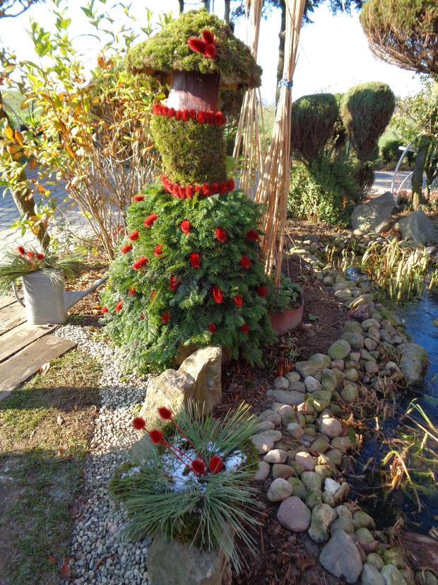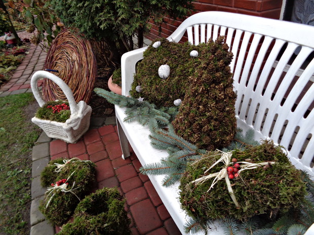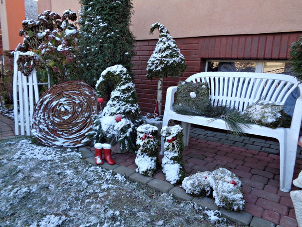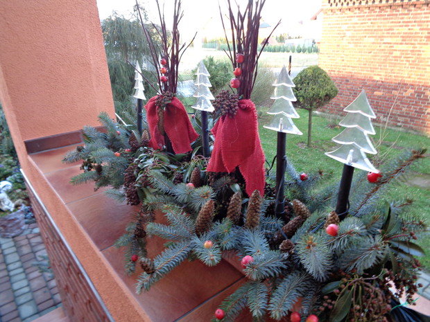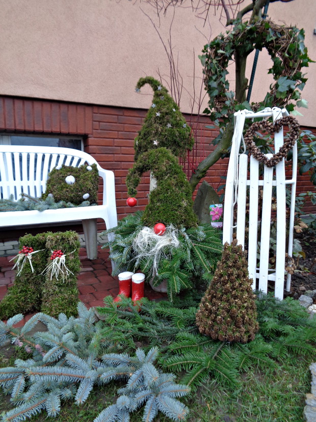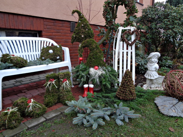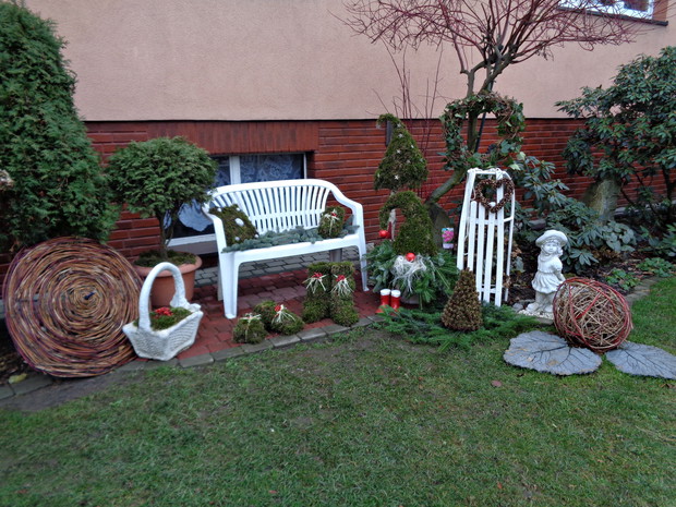 Wszyscy czekamy na płatki śniegu które okryją nasz ogród śnieżna bielą i jest to znak że wkrótce nadejdą Święta Bożego Narodzenia to czas radości i spotkań rodzinnych do których już wcześniej zaczynam snuć plany jak i czym przyozdobić nie tylko nasz dom ale i ogród. Przystrajając nasz dom czy ogród nie sięgam nie tylko po gotowe dekoracje, ale po te które znajdują się w ogrodzie a przy tym są niedrogie. Wystarczy zebrać w ogrodzie gałązki iglaków, zasuszonych kwiatostanów, owoców i szyszek. A zaczynam od samodzielnego zrobienia wieńca adwentowego, najlepiej nadają się wierzchołki gałązek jodły, świerka i igiełków sosny, z ustawionymi czterema świeczkami jest to tradycja wprowadzająca niepowtarzalny nastrój i oczekiwania na zbliżające Święta. Zapalenie jednej świeczki oznacza upłyniecie jednego tygodnia zbliżając nas do świąt.