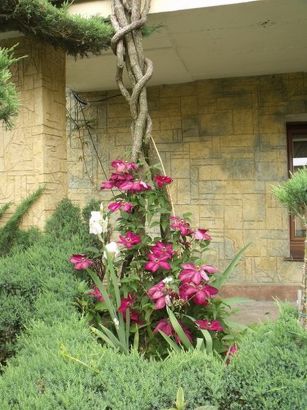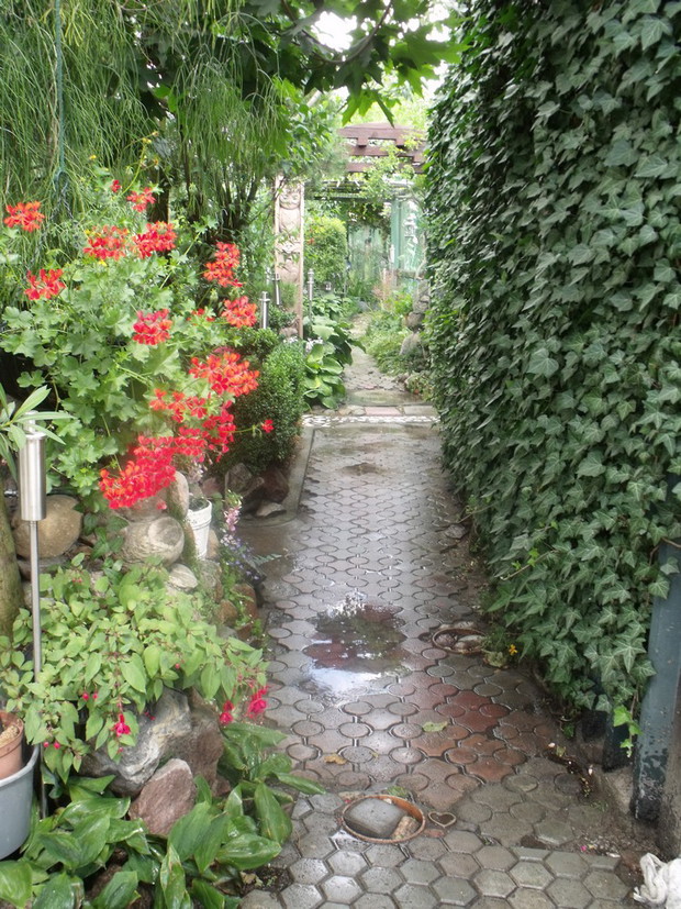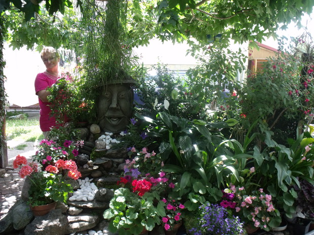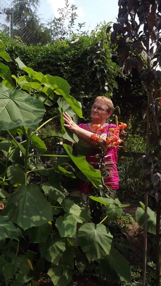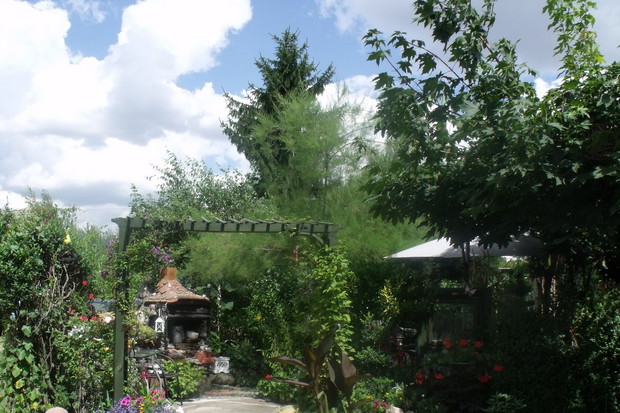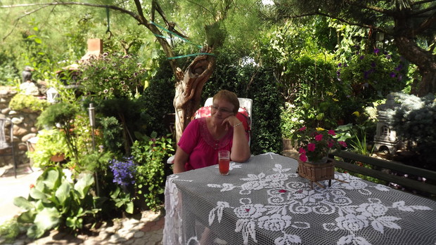 Mój ogród to moja pasja i chociaż jest nieduży mierzy raptem około 170 metrów .Ścieszki oprowadzają zakolami,co daje wrażenie dużego ogrodu.Jest pełen krzewów i donic z kwitnącym kwiatami . Tworze go od wielu lat powstaje z małych sadzonek własnoręcznie ukorzenionych lub nasion jak w przypadku paulowni, która ma liście większe od dłoni .Mój kawałek ogrodu wymaga wielkiego wkładu pracy bo i dużo roślin kształtuje, ale za to osiągnięte efekty dają wiele radości i satysfakcji i czy nie oto chodzi?.Jest tu także niewielkie oczko, które musiałam skrzętnie ogrodzić bo przebywają tu dzieci .Nie sposób wszystko przedstawić na kilku fotografiach moje rzeźby wykonuje sama, w suporeksie, którymi przyozdabiam ogród. Dla mnie,, mój tajemniczy ogród " bo takie jest jego założenie tętni życiem dnia codziennego.
