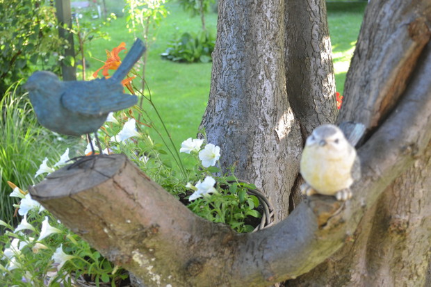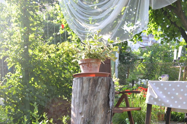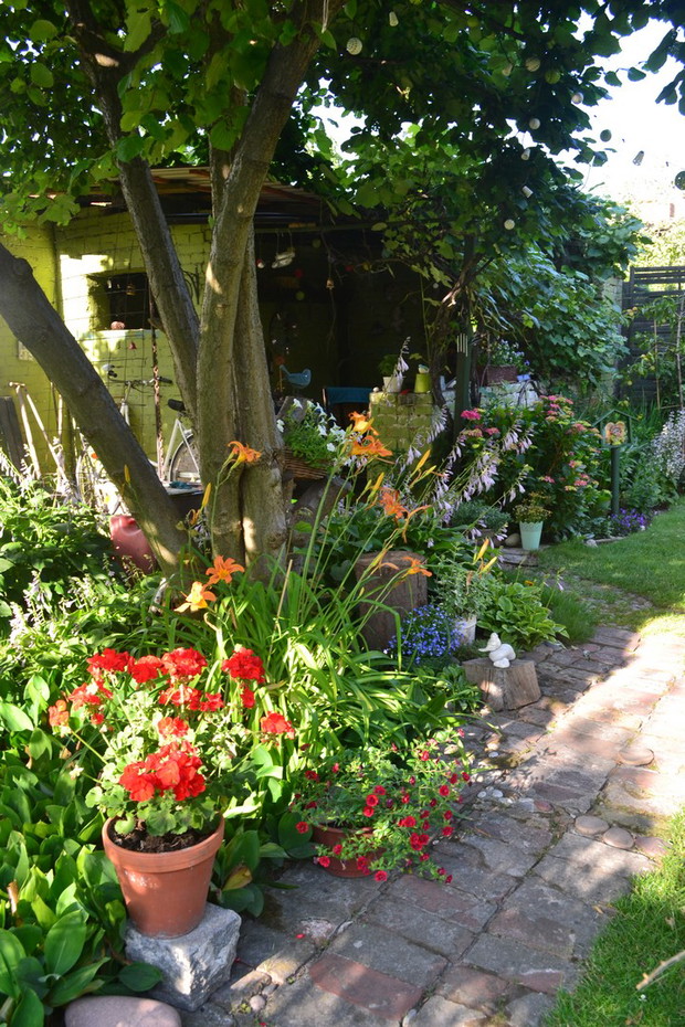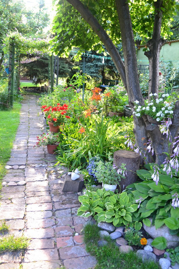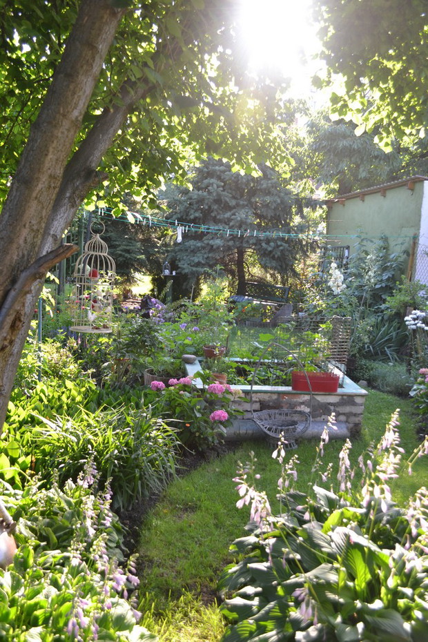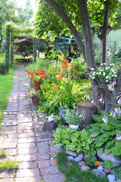 Pośród wrocławskiego zgiełku i betonowych osiedli jest miejsce, gdzie mogę się całkowicie oderwać od wielkomiejskiej rzeczywistości. Miejsce gdzie pośród śpiewu ptaków i bzyczenia pszczół zapominam, że jest to centrum miasta. Takim miejscem jest mój ogród. Choć dbanie o każdą roślinę wymaga wiele czasu i pracy, to kiedy siadam z mężem w słoneczny dzień wśrod zieleni , wiem że warto . W upalne dni znajduję ukojenie pod cieniem drzewa orzecha laskowego lub w kamiennej altance, która służy chłodem. Co chwilę wzbogacam moją ogrodową kolekcję o nowe rośliny , ale też tworzę sama. Najnowsze dzieła to stolik z pnia drzwa oraz skalniak zrobiony ze starego krzesła.Ogród zamieszkują też mosiężne ptaszki,które wyglądają zza drzew oraz inne ozdoby. Wyjątkowym miejscem jest mały lasek z iglakami, w którym uwielbia wylegiwać się nasz kot Filemon. Wrzosy, czosnek ozdobny wśród liści dyni, fasola która rośnie w oczach, morze kwiatów,spłyawające latorośle winogron - to wszystko tworzy mój tajemniczy ogród. Wiem, że nigdzie nie odpoczne tak jak tutaj- to moje miejsce na ziemi.