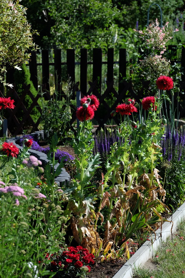 Codziennie przychodzę do mojego pięknego ogrodu, aby poobserwować przyrodę, która jest niesamowita. Mój ogród otoczony jest lasem, dlatego bardzo często mam miłych lokatorów leśnych. Obok ławki , na której siedzę posadzone jest kleome które zachwyca swoimi delikatnymi kwiatami. Od altany idzie mała ścieżka z trawy na której często spotykam wygrzewającego się kota sąsiadów. Idąc po niej i rozglądając się na prawo i lewo możemy zobaczyć jak zwierzęta uwijają się w pracy i jak motyle, pszczoły i inne latające owady zapylają kwiatki. Między drzewami przelatują ptaki różnej maści takie piękne i kolorowe aż patrzeć chce się całymi dniami jak wiją swoje gniazdka. Wszędzie zielona trawa i kolorowe kwiaty. A gdy tak siedzę na tej ławce to wiaterek zawieje i czuję jak wszystko pachnie. Piękny słodki zapach smagliczki miesza się z cytrynowym zapachem mięty cytrynowej, jednym słowem poezja zapachów. Jestem bardzo młodym ogrodnikiem gdyż ogród dopiero ma 5 lat i zaczynam widzieć co trzeba zmienić a co ulepszyć.